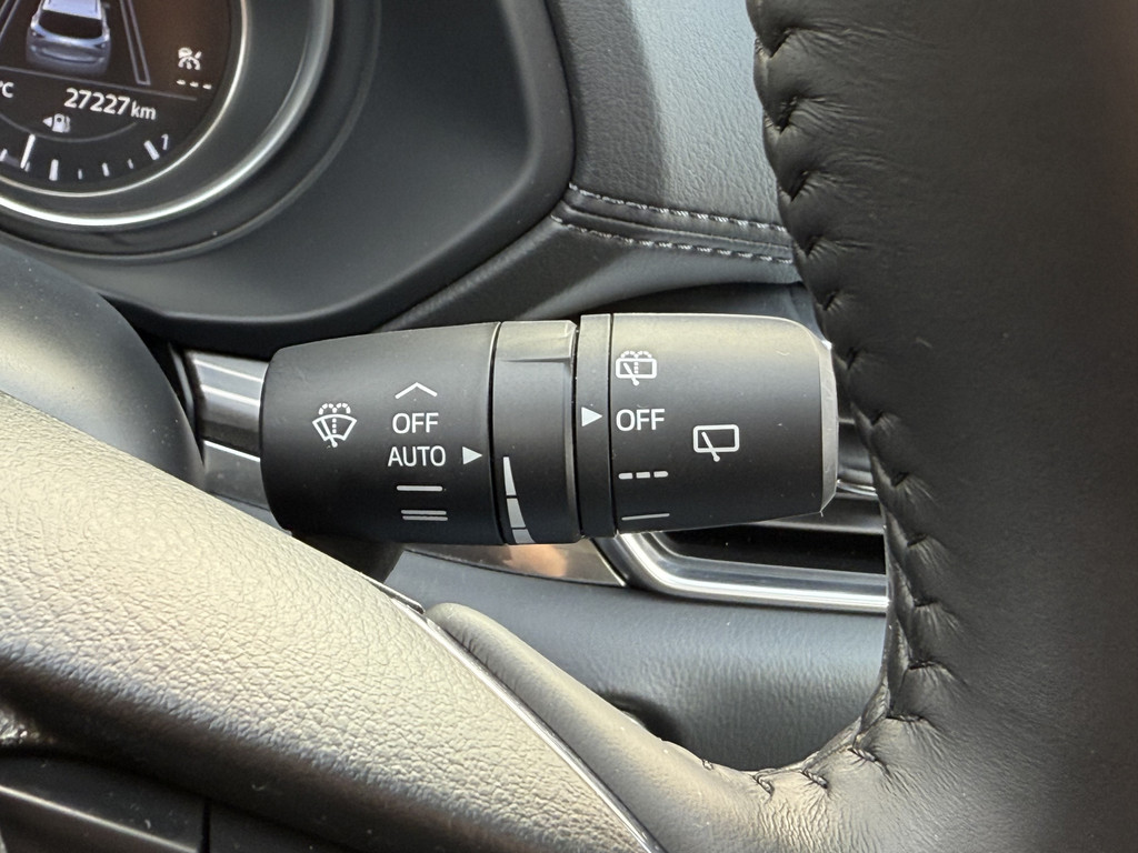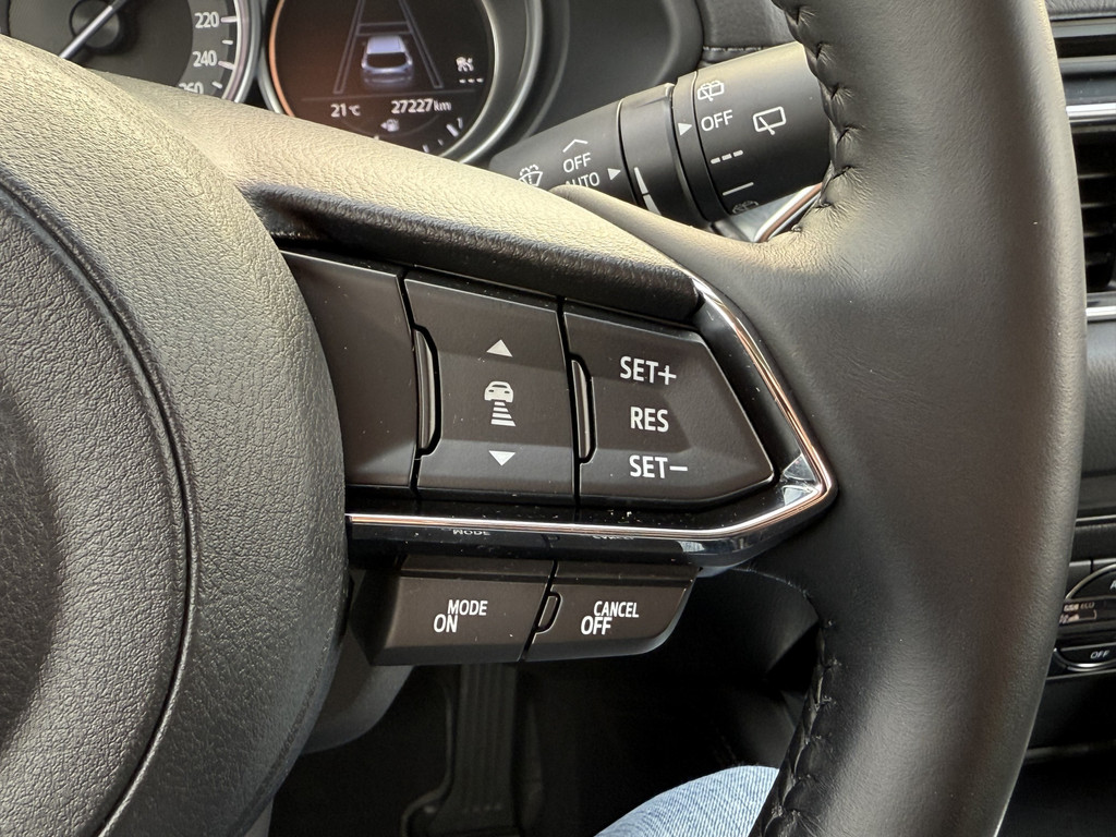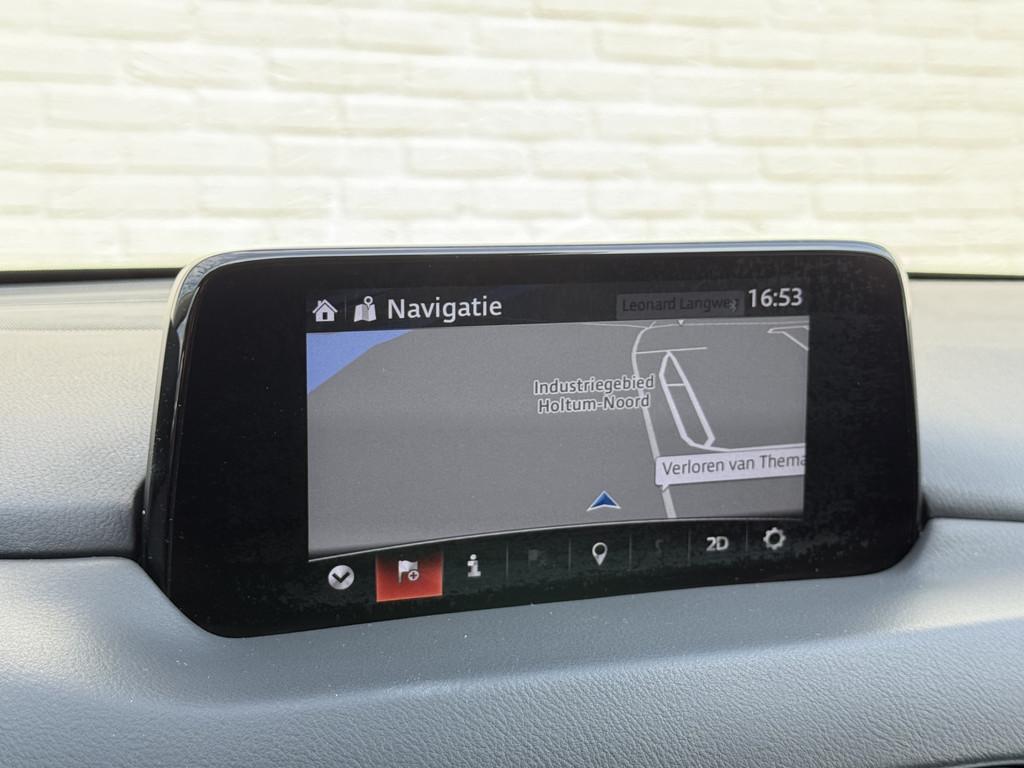 Met de 360 graden camera, verzorgd door vier camera's, wordt rijden in drukke steden of het navigeren in nauwe ruimtes een koud kunstje. Adaptive cruise control is een comfortabele en veilige optie. Het systeem reguleert de snelheid en houdt automatisch afstand tot uw voorligger. Spraakbediening herkent uw stem en voert opdrachten uit terwijl u beide handen aan het stuur houdt. Hoog, laag, midrange: het high performance audiosysteem is volledig afgestemd op de akoestiek in deze auto. Zorgeloos en geconcentreerd rijden? Het full map navigatiesysteem wijst de weg! De Mazda is standaard voorzien van: achteropkomend verkeer waarschuwing, electronic climate control, DAB ontvangst, regensensor, keyless entry en automatisch dimmende binnenspiegel.