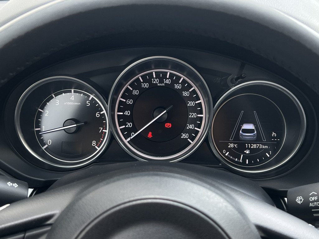 Een veiligheidsverhogende optie is de ingebouwde spraakbediening. Terwijl u uw ogen op de weg houdt, bedient u de auto met uw stem. Te weinig afstand tussen u en de achterligger? De sensoren registreren het direct en de achteropkomend verkeer waarschuwing geeft een signaal. Tot de standaard uitrusting van deze auto hoort ook electronic climate control. Om de veiligheid onderweg te verhogen, heeft deze Mazda zowel een automatisch inschakelbare verlichting als een regensensor aan boord, zodat hij zelf de verlichting en de ruitenwissers kan inschakelen. Met ingeschakelde cruise control zit u ontspannen achter het stuur. De Mazda is standaard voorzien van: automatisch dimmende binnenspiegel, centrale deurvergrendeling met afstandsbediening, boordcomputer en verstelbaar stuur.