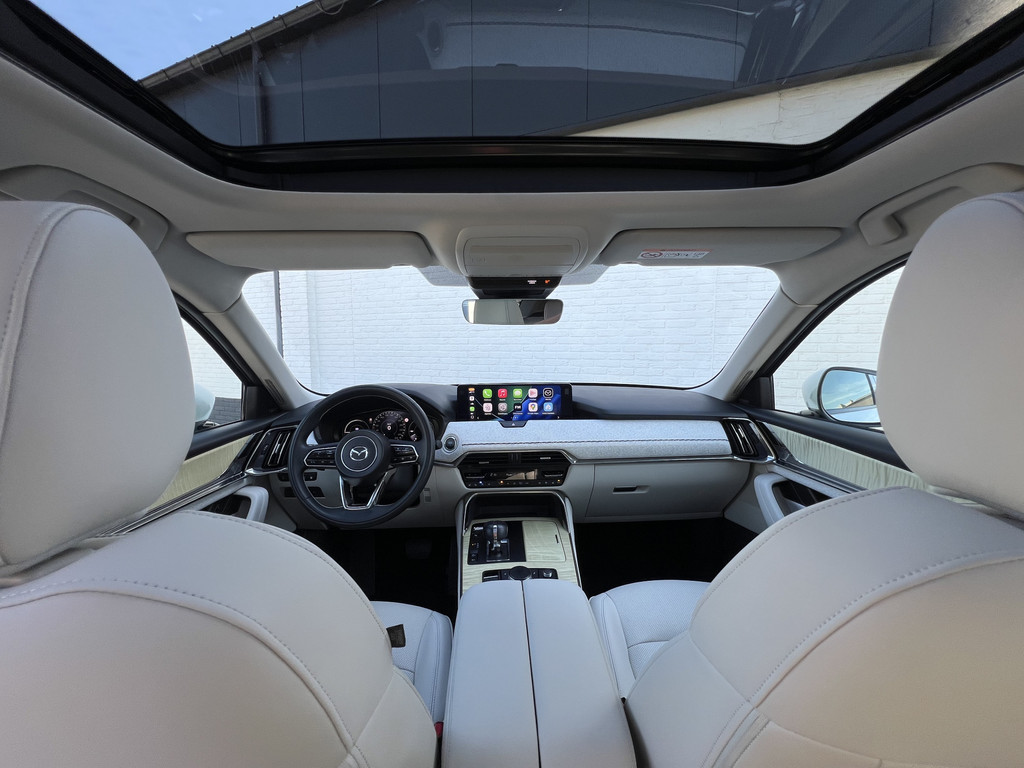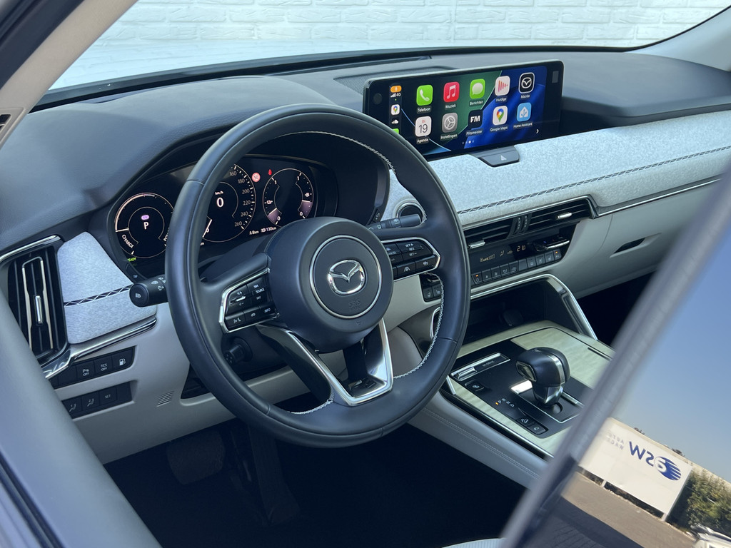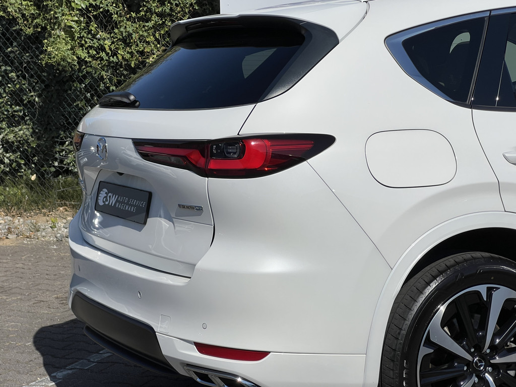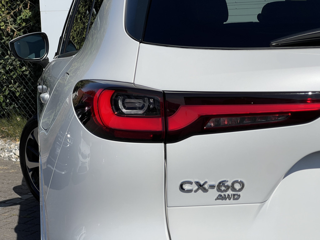 U rijdt gemakkelijk, comfortabel en zonder zorgen met deze Mazda CX-60. Het is een auto van het bouwjaar 2022. Deze Mazda CX-60 heeft een hybride motor, dus een combi van brandstof en elektrisch. Een slim en milieuvriendelijk systeem dat ook nog eens lekker kostenbesparend is. Als we het over kwaliteit en stijl hebben, wat dacht u dan van het lederen interieur? Zit u goed? De stoelen zijn eenvoudig instelbaar dankzij de elektrische bediening met geheugen. Laat de zon maar schijnen door het elektrisch bediende glazen panoramadak. De achterklep opent automatisch met een druk op de knop. Handig als u met volle handen staat. De verwarmde achterbank is een luxe extra, speciaal voor de passagiers. Natuurlijk behoren 20 inch lichtmetalen velgen, LED koplampen, dakspoiler, donker getint glas achter, in delen neerklapbare achterbank en LED-achterlichten ook tot de uitrusting van deze complete auto.