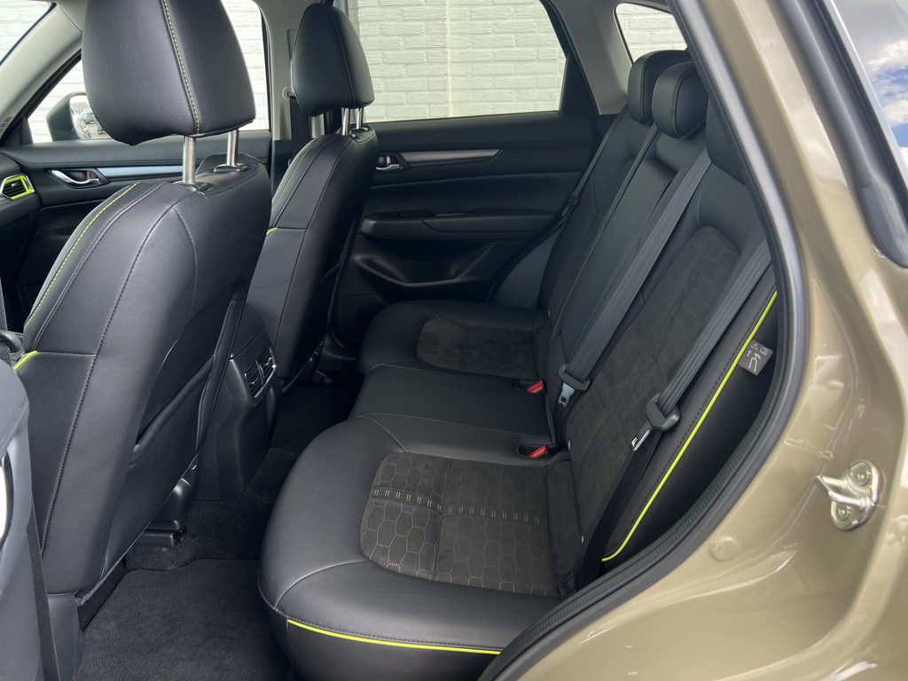 De slimme lay-out van het digitale dashboard zorgt voor een uitstekend overzicht onderweg. Het gebruik van de 360 graden camera op deze auto vergemakkelijkt het parkeren aanzienlijk, vooral in krappe ruimtes. Deze Mazda CX-5 is voorzien van remote services. Via uw smartphone bedient u diverse functies ook op afstand en krijgt u informatie over de status van uw auto. Onderweg kunt u veilig genieten van het audiosysteem met DAB-radio en het full map navigatiesysteem. Want in deze Mazda bedient u ze vanaf het stuurwiel of met uw stem. Onderweg laadt u uw smartphone snoerloos op met behulp van de draadloze oplaadmogelijkheid voor telefoons. Deze auto is voorzien van achteropkomend verkeer waarschuwing, electronic climate control, regensensor, cruise control, keyless entry en automatisch dimmende binnenspiegel.
