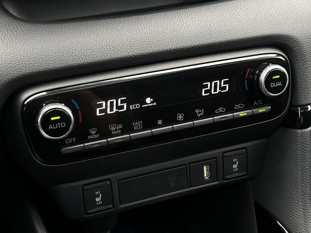 U rijdt gemakkelijk, comfortabel en zonder zorgen met deze Toyota Yaris. Met zijn benzinemotor en automatische transmissie is dit een prima auto voor nog vele kilometers. Op koude en donkere dagen zijn de verwarmbare voorstoelen een uitkomst. Altijd een goede zitpositie bij iedere snelheid, dankzij de sportstoelen. Het panoramadak geeft extra sfeer aan het interieur en biedt een prachtige doorkijk naar buiten. Ook is de auto voorzien van: 17 inch lichtmetalen velgen, LED koplampen, dakspoiler, donker getint glas achter, in delen neerklapbare achterbank en LED-achterlichten.