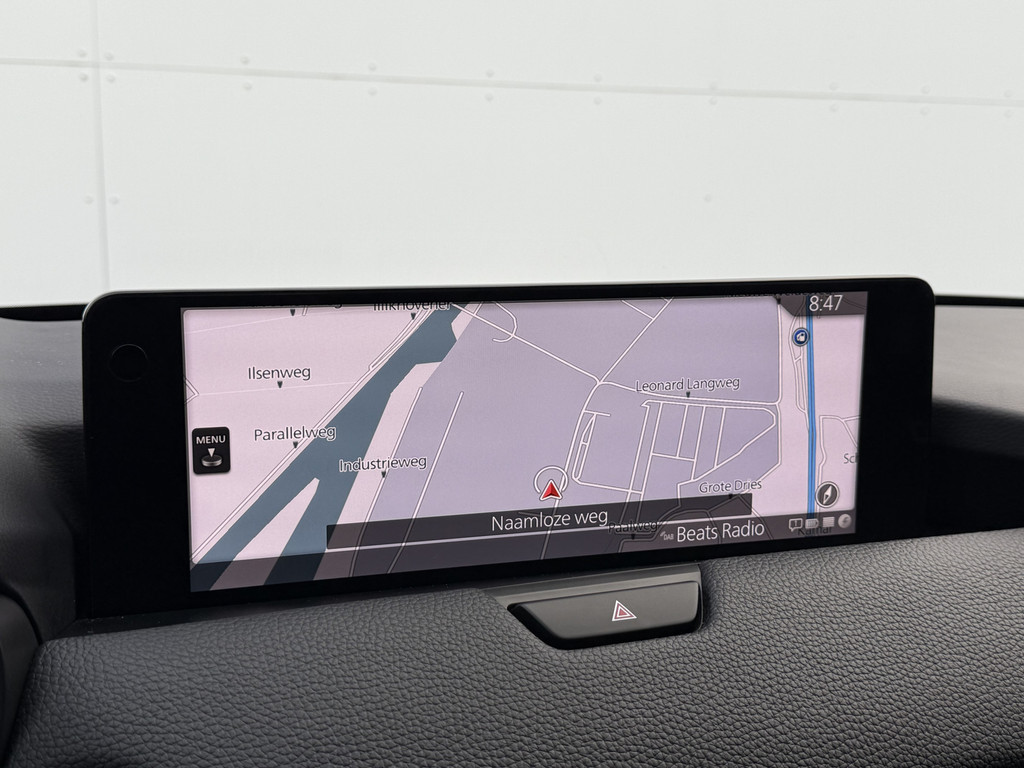 Met het digitale dashboard van deze auto is de aanpassing van uw cockpitinterface een fluitje van een cent. De vier camera's genereren samen een 360 graden beeld rond de auto, zodat u een volledig overzicht hebt van wat er rondom uw auto gebeurt. Adaptive cruise control is veilig en comfortabel. De snelheidsregelaar houdt automatisch afstand tot het voertuig dat voor u rijdt. Waar u zelf ook bent, u staat altijd in contact met de auto via de app op uw smartphone. Zo controleert u uiteenlopende functies, ook op afstand. Voor wie hoge eisen stelt aan geluid en akoestiek, is deze auto voorzien van een high performance audiosysteem. De uitrusting van deze Mazda is met dashboard met spraakbediening, full map navigatiesysteem, kruisend verkeer detectie, electronic climate control, schakelpaddles aan het stuur en draadloos opladen behoorlijk compleet.