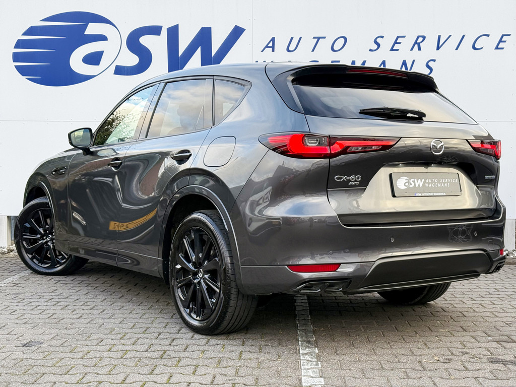Stijlvol en veelzijdig, dat zijn misschien wel de belangrijkste kenmerken van de Mazda CX-60. Dit exemplaar is bovendien voorzien van verschillende systemen die het autorijden aangenamer en veiliger maken. Op de teller van deze auto staat slechts 25045 kilometer. Deze Mazda CX-60 is voorzien van zowel een elektromotor als een verbrandingsmotor. Ideale combi! Kijk, dat noemen we nou stijlvol: een fraai lederen interieur. Gecombineerd met het heerlijke gemak van de elektrisch bedienbare achterklep. 's Winters komen de verwarmbare voorstoelen heerlijk van pas. Voor en achter: iedereen dezelfde luxe. Vandaar de verwarmde achterbank. Ook 20 inch lichtmetalen velgen, LED koplampen, dakspoiler, donker getint glas achter, in delen neerklapbare achterbank en LED-achterlichten horen tot de voorzieningen op deze auto.