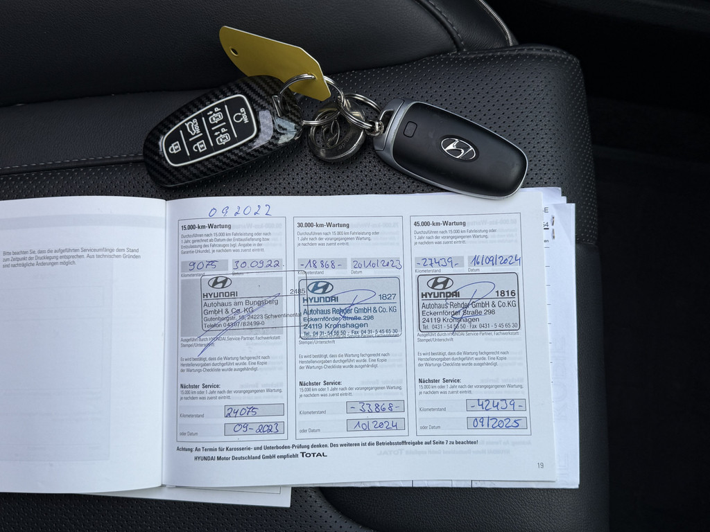 De verkoop van Koreaanse merken zit enorm in de lift. Niet zo gek want u krijgt veel auto voor niet te veel geld. Op de teller van deze dealeronderhouden auto staat slechts 37161 kilometer. De auto is van bouwjaar 2021. Deze hybride auto beschikt over een verbrandingsmotor én een elektromotor. Daardoor rijdt de auto zeer comfortabel en is tegelijk zuinig in het verbruik. Van binnen lijkt het allemaal uitermate ruim dankzij de vrije inval van daglicht via het elektrisch bediende glazen panorama dak. Comfort en luxe? Dat krijgt u door het lederen interieur. En optimaal gemak is er in de vorm van de elektrisch bedienbare achterklep. Ga samen met uw bijrijder lekker zitten in de verwarmbare voorstoelen. De verwarmbare achterbank is een traktatie voor iedereen die achterin plaatsneemt. Verder is de Hyundai uitgerust met: 19 inch lichtmetalen velgen, LED koplampen, warmtewerend glas, in delen neerklapbare achterbank, LED-achterlichten en verstelbare lendensteunen.