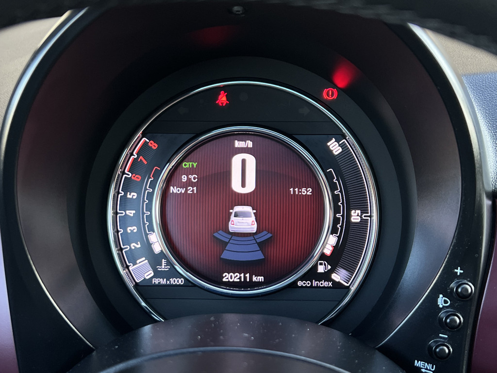 U leest alle belangrijke functies helder af dankzij het digitale dashboard. Mocht zich een probleem voordoen, dan krijgt u via remote services op uw smartphone te zien wat er precies aan de hand is, waar u ook bent. Audiovolume aanpassen of wisselen van radiozender: dat gaat makkelijk en veilig met de audiobediening op het stuur. Met de DAB-ontvanger heeft u keuze uit talloze digitale radiozenders met de allerhoogste geluidskwaliteit. Boem is ho? Niet bij deze Fiat 500. De piepjes van de parkeersensoren waarschuwen u op tijd voor obstakels. Met cruise control, airconditioning, lederen stuur, usb-aansluiting en centrale deurvergrendeling met afstandsbediening is deze Fiat helemaal compleet.