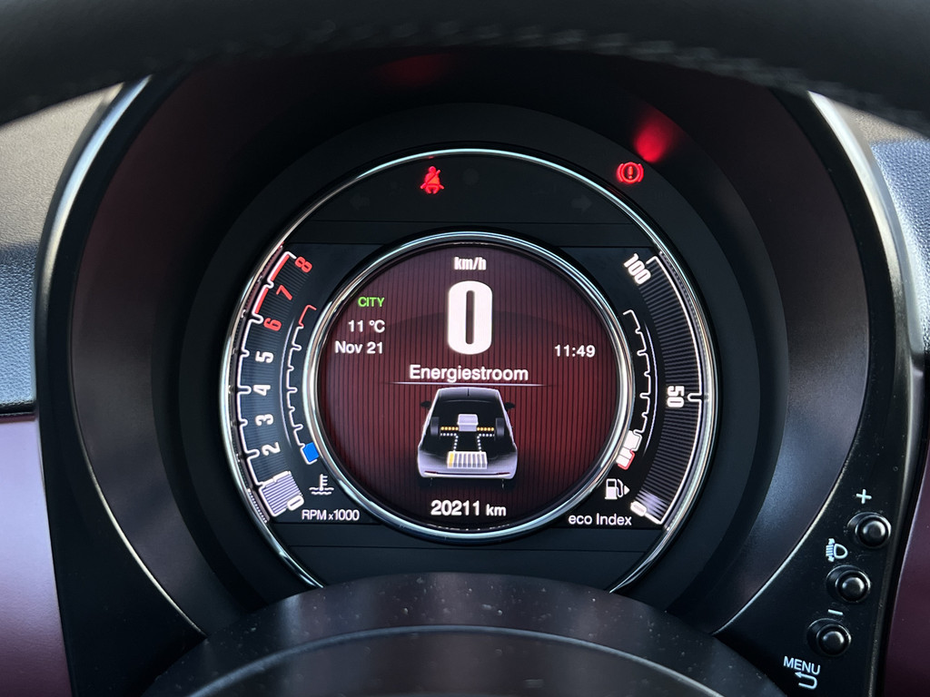 U leest alle belangrijke functies helder af dankzij het digitale dashboard. Mocht zich een probleem voordoen, dan krijgt u via remote services op uw smartphone te zien wat er precies aan de hand is, waar u ook bent. Audiovolume aanpassen of wisselen van radiozender: dat gaat makkelijk en veilig met de audiobediening op het stuur. Met de DAB-ontvanger heeft u keuze uit talloze digitale radiozenders met de allerhoogste geluidskwaliteit. Boem is ho? Niet bij deze Fiat 500. De piepjes van de parkeersensoren waarschuwen u op tijd voor obstakels. Met cruise control, airconditioning, lederen stuur, usb-aansluiting en centrale deurvergrendeling met afstandsbediening is deze Fiat helemaal compleet.
