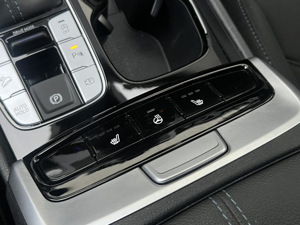 Pragmatisch en veilig als deze auto is, beschikt hij over diverse veiligheidssystemen. De actuele snelheidslimiet, een inhaalverbod en andere verkeersborden; de verkeersborddetectie ondersteunt u tijdens elke rit. Voorzien van het Lane-keeping systeem. Ofwel: blijf automatisch in je baan. Forward collision warning waarschuwt voor een kop-staart botsing. Bovenop deze veiligheidsfeatures heeft deze Hyundai bovendien hill hold functie, vermoeidheidsherkenning, autonoom remsysteem en bandenspanningcontrolesysteem.