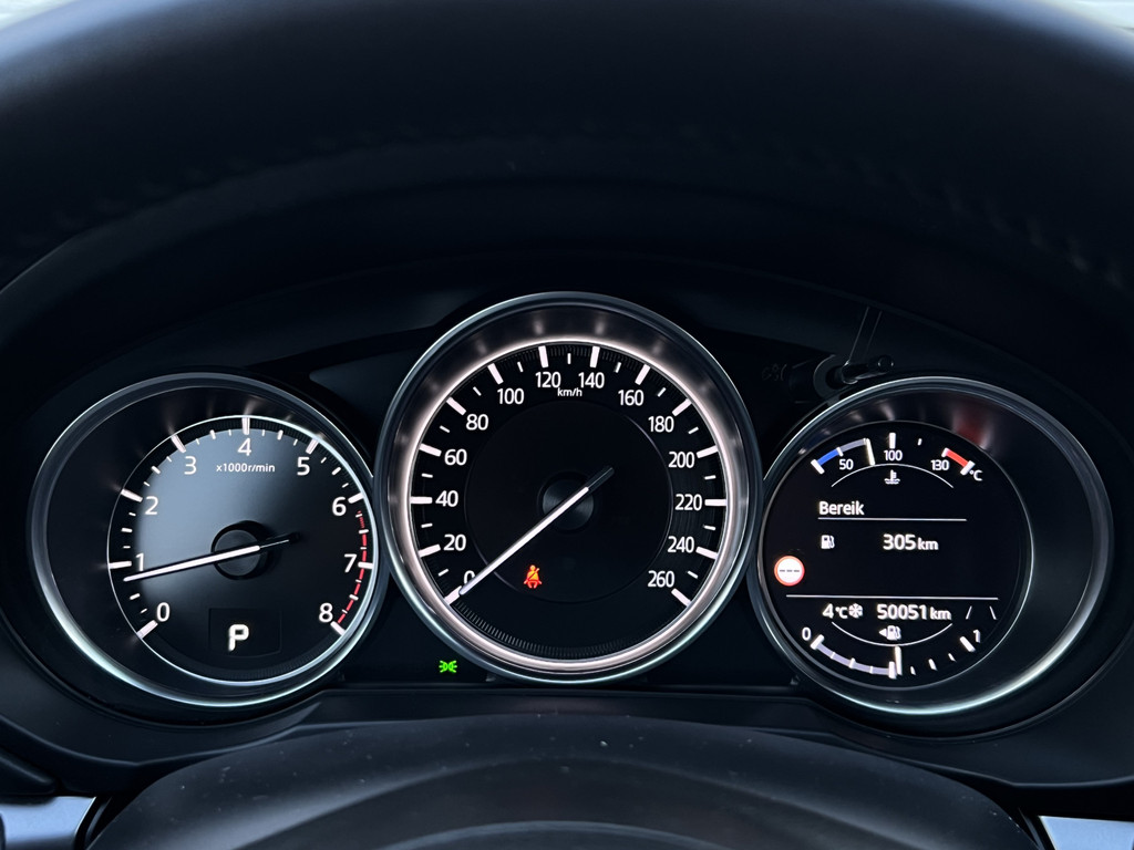 Het zal u verbazen hoe deze auto in staat is om voor u de omgeving en het verkeer om u heen in de gaten te houden. Blik permanent op de weg en toch belangrijke functies in beeld? De head-up display projecteert rij-informatie op de voorruit! Een belangrijke bijdrage aan de veiligheid onderweg levert de verkeersbord-detectie in deze Mazda. Een camera houdt de juiste koers binnen de rijstrook in de gaten en het Lane-keeping systeem corrigeert bij afwijkingen. Verder is deze auto uitgerust met dodehoekdetectie, forward collision warning system, hill hold functie, brake assist, vermoeidheidsherkenning en bandenspanningcontrolesysteem.