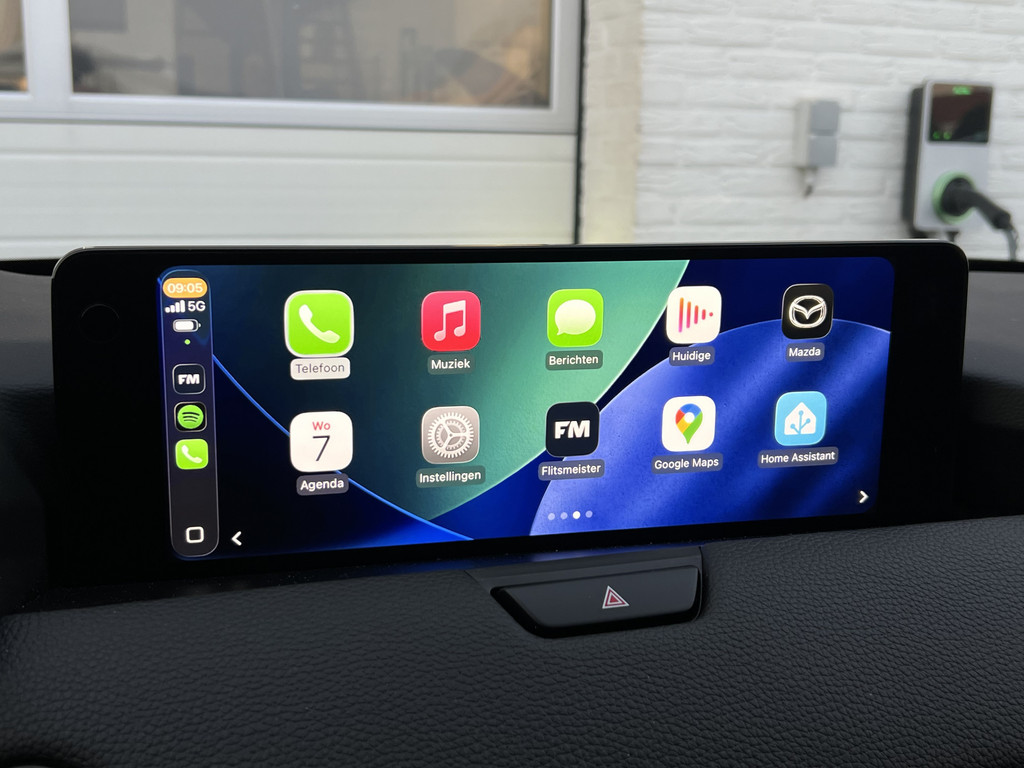 Tijdens de rit wordt u als bestuurder ondersteund door verschillende systemen die de weg en uw omgeving in de gaten houden. Uiteenlopende functies maakt de head-up display zichtbaar in de voorruit. Dat de auto steeds meer taken van de bestuurder overneemt, merkt u bijvoorbeeld aan het systeem voor verkeersbord-detectie in deze Mazda. Het Lane-keeping systeem zorgt dat u mooi binnen de lijntjes blijft. Ongemerkt buiten de rijstrook komen is er niet meer bij. Verder is deze auto uitgerust met dodehoekdetector detectiesysteem, forward collision warning system, hill hold functie, brake assist, vermoeidheidsherkenning en bandenspanningcontrolesysteem.