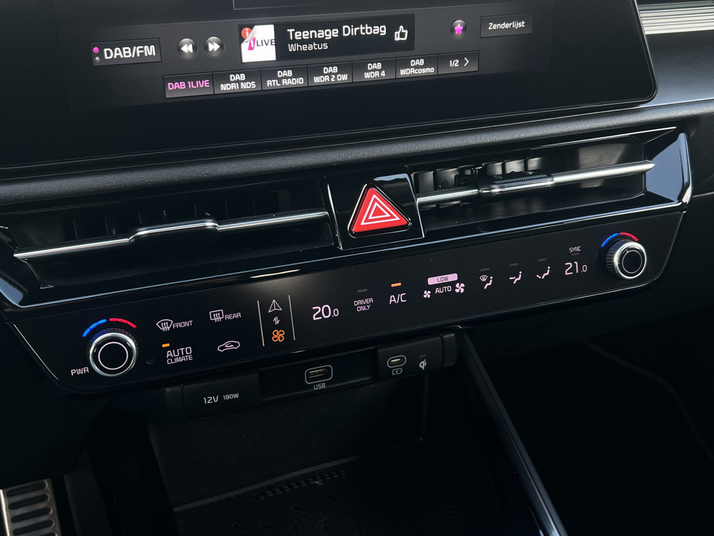 Deze auto is voorzien van een digitaal dashboard waarmee u de cockpit-interface kunt personaliseren. Overzichtelijk en veilig parkeren met de achteruitrijcamera. Overal en altijd. Adaptive cruise control is veilig en comfortabel. De snelheidsregelaar houdt automatisch afstand tot het voertuig dat voor u rijdt. De ingebouwde file assistent is een echte helper als het vaststaat onderweg. Het systeem meet ruimte tot de auto vóór u permanent en activeert zelfs de remmen als uw voorligger stopt. Ingericht op Connected Services, voor een nog veiligere en comfortabelere rit. U bent in deze Kia ook voorzien van dashboard met spraakbediening, premium audiosysteem, full map navigatiesysteem, kruisend verkeer detectie, automatische airconditioning en schakelpaddles aan het stuur.