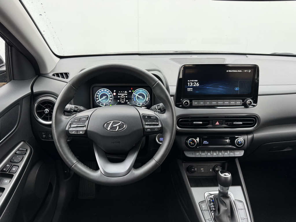 Het is een auto die er nog jaren tegenaan kan, deze Hyundai. De onderhoudsgeschiedenis is bekend, de kilometerteller staat op 28292. De hybride motor combineert het gebruik van brandstof en elektriciteit, en dat maakt van deze Hyundai Kona een zuinige, slimme auto. Op koude en donkere dagen zijn de verwarmbare voorstoelen een uitkomst. Wind, sneeuw, hagel, regen... allemaal vergeten als u het verwarmd stuurwiel in handen heeft. Natuurlijk behoren 18 inch lichtmetalen velgen, warmtewerend glas, LED-dagrijverlichting, dakspoiler, in delen neerklapbare achterbank en verstelbare lendensteunen ook tot de uitrusting van deze complete auto.