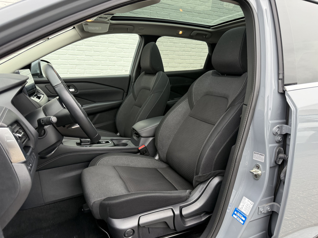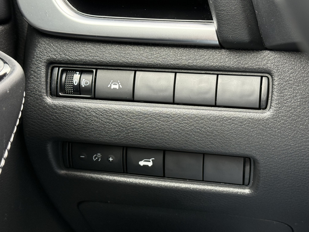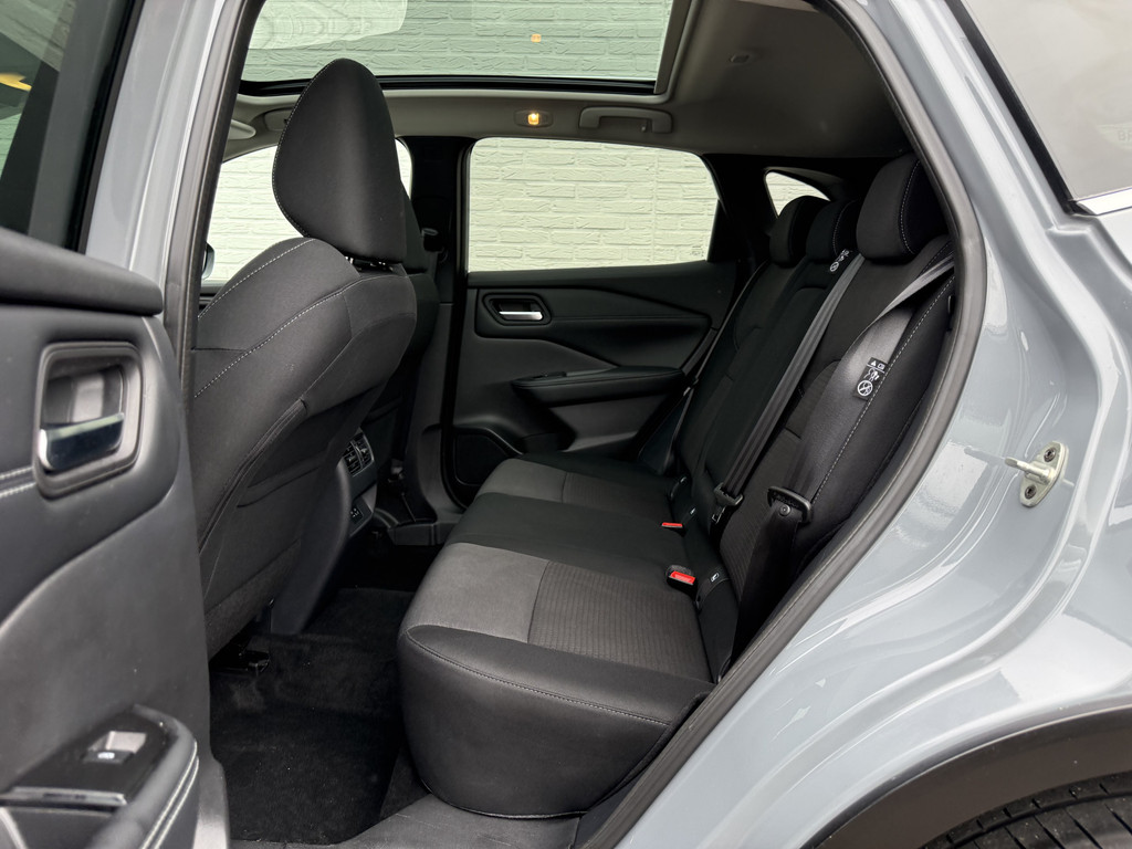 Met zijn dynamische eigenschappen belooft deze Nissan Qashqai u een heleboel rijplezier. Hij is ontwikkeld op een geavanceerd onderstel en biedt altijd een veilig weggedrag. De hybride combi van een verbrandingsmotor en een elektromotor zorgt voor zeer laag brandstofverbruik en veel minder uitstoot. Met de elektrisch bedienbare achterklep kunt u handsfree bij de kofferruimte komen. En daarna prinsheerlijk plaatsnemen in het lederen interieur. Er is stoelverwarming aanwezig in deze auto. In weer en wind een cabriosensatie? Dat kan met het riante glazen panoramadak. Bij deze Nissan Qashqai is aan alles gedacht, tot en met een verwarmd stuurwiel aan toe. Tot de uitrusting behoren ook 18 inch lichtmetalen velgen, Full LED koplampen, dakspoiler, donker getint glas achter, in delen neerklapbare achterbank en LED-achterlichten.