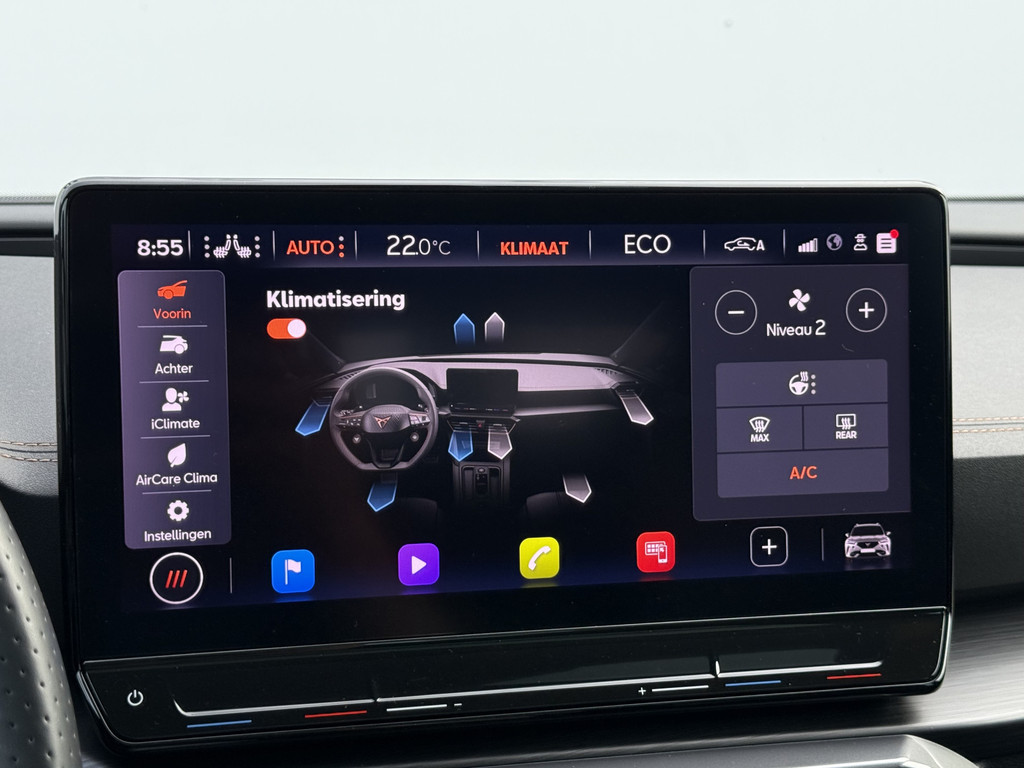 Deze auto is voorzien van innovatieve systemen die u onderweg begeleiden en beschermen. In het instrumentarium kunt u bovendien de verkeersborden zien die u onderweg tegenkomt. Zo helpt deze CUPRA u om veiliger te rijden. Deze CUPRA Formentor is ook behulpzaam als het gaat om een rechte koers. Het Lane-keeping systeem signaleert en corrigeert als u onbedoeld de rijstrooklijnen dreigt te overschrijden. In een noodsituatie waarschuwt forward collision warning bij een dreigende aanrijding met een voorligger. In deze CUPRA vinden we verder een dodehoekdetectie, hill hold functie, vermoeidheidsherkenning, autonoom remsysteem en bandenspanningcontrolesysteem.