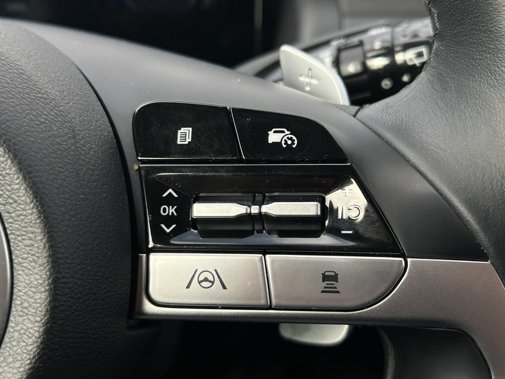 Geavanceerde veiligheidssystemen kijken tijdens elke rit met u mee en schatten continu de risico's in. In het instrumentarium kunt u bovendien de verkeersborden zien die u onderweg tegenkomt. Zo helpt deze Hyundai u om veiliger te rijden. Indien u onbedoeld de rijstrook lijkt te verlaten, reageert het Lane-keeping systeem meteen en corrigeert. Botsingen met een voorligger gebeuren relatief vaak. De forward collision warning slaat tijdig alarm als dat risico ontstaat, zodat u kunt ingrijpen. Dankzij veiligheidsvoorzieningen als dodehoekdetectie, hill hold functie, vermoeidheidsherkenning, autonoom remsysteem en bandenspanningcontrolesysteem, bent u steeds veilig onderweg.