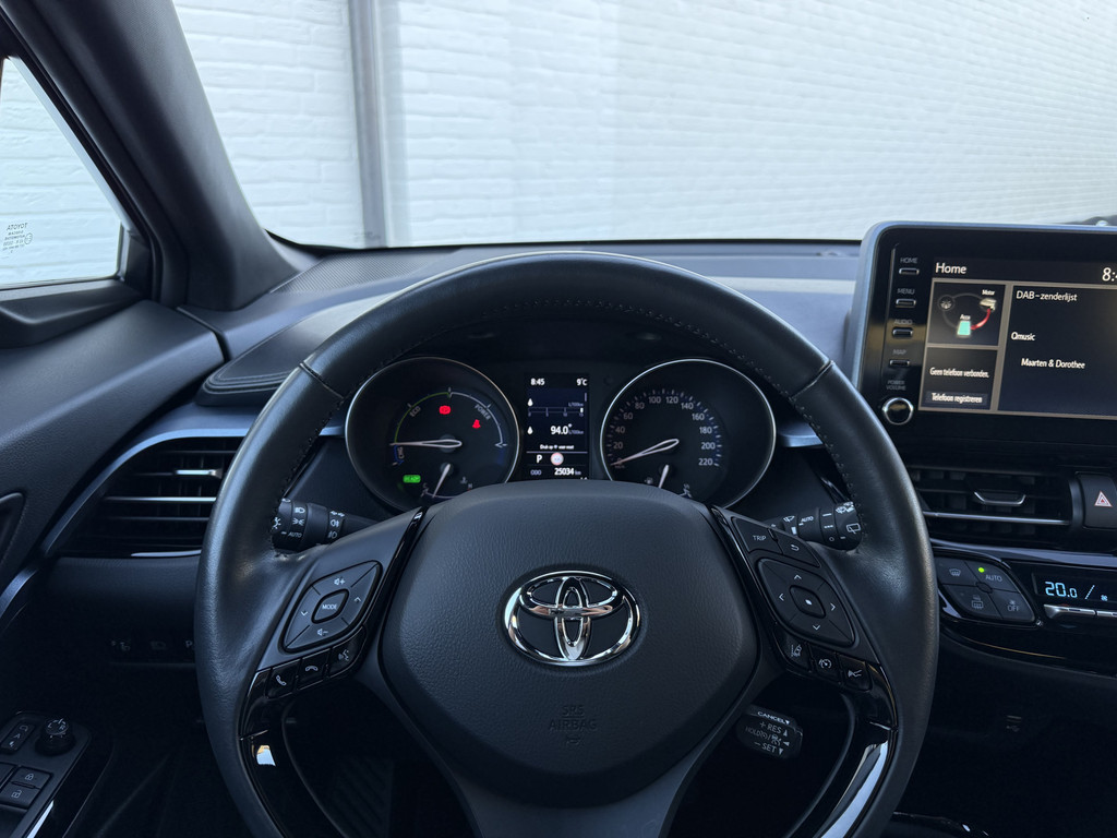 Zoals u mag verwachten van deze Toyota C-HR is hij uitgerust met een reeks aan actieve veiligheidssystemen. De actuele snelheidslimiet, een inhaalverbod en andere verkeersborden; de verkeersborddetectie ondersteunt u tijdens elke rit. Het Lane-keeping systeem garandeert dat u zich niet onverhoeds buiten de lijnen van de rijstrook begeeft. De forward collision warning geeft een botswaarschuwing als een aanrijding dreigt met een voorligger. De auto is ook uitgerust met dodehoekdetectie, hill hold functie, brake assist, vermoeidheidsherkenning en bandenspanningcontrolesysteem.