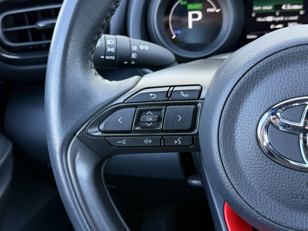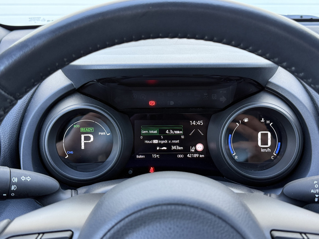 Met het digitale dashboard heeft u essentiële info in beeld. Altijd, overal. Ongelukken of parkeerschade? Dat gebeurt u niet meer, met de achteruitrijcamera. Met adaptive cruise control houdt de auto zelfstandig afstand tot uw voorligger. Een veiligheidsverhogende optie waarmee u comfortabel onderweg bent. Locatie, motorconditie, storingen... via Connected Services krijgt u alle vitale info over de auto door. Ook handig bij pech! In deze Yaris vindt u schakelaars op het stuur om het full map navigatiesysteem te bedienen en het audio-installatiesysteem met DAB-ontvangst. Ook is de Toyota uitgerust met: automatische airconditioning, regensensor, keyless entry, lederen stuur, usb-aansluiting en lederen versnellingspook.