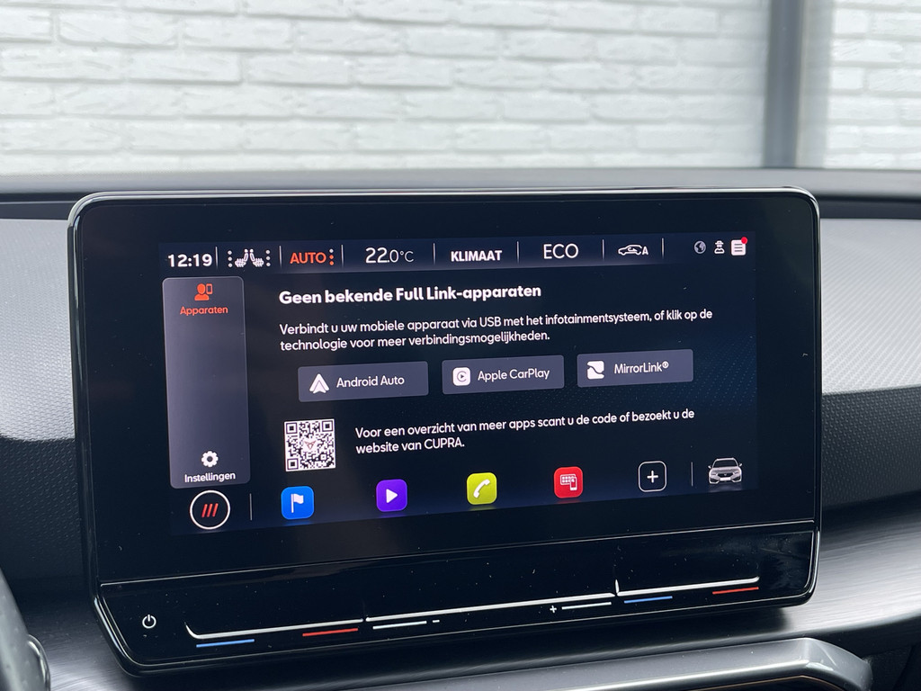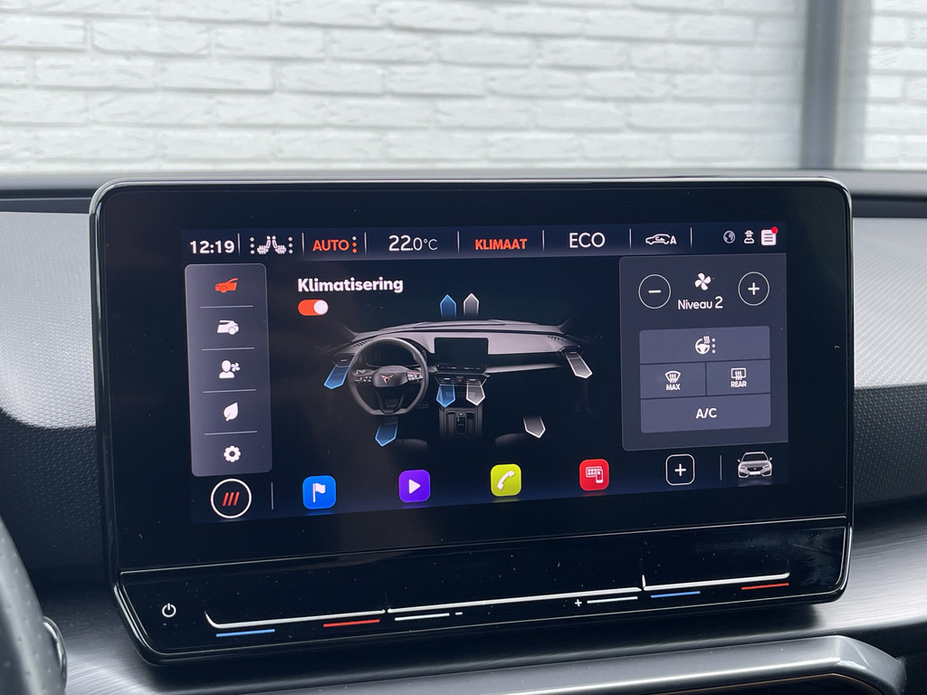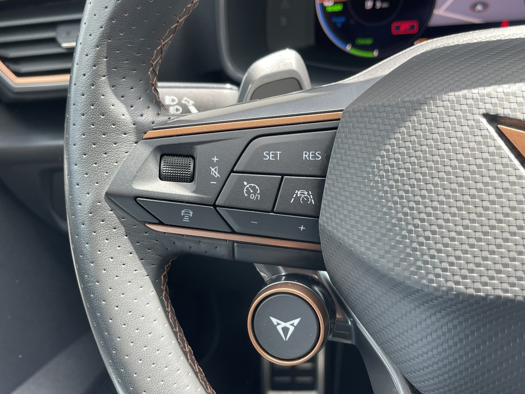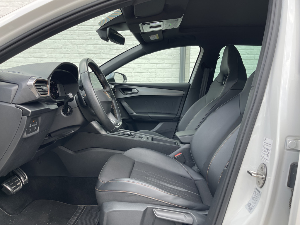 Het eigentijdse interieur wordt natuurlijk helemaal volmaakt met het digitale dashboard. Niets achter deze auto blijft verborgen door de achteruitrijcamera. Een veilig gevoel! Adaptive cruise control is een comfortabele en veilige optie. Het systeem reguleert de snelheid en houdt automatisch afstand tot uw voorligger. De file assistent verzacht het fileleed door automatisch veilig afstand te houden tot de voorligger en zo nodig zelfs te stoppen als de rij tot stilstand komt. Dankzij Connected Services weet u precies waar uw auto geparkeerd staat. Ook andere functies, zoals bandenspanning en brandstofniveau, zijn via de app altijd onder handbereik. U bent in deze CUPRA ook voorzien van dashboard met spraakbediening, full map navigatiesysteem, WIFI-hotspot, achteropkomend verkeer waarschuwing, electronic climate control en sportstuur met schakelpaddels.