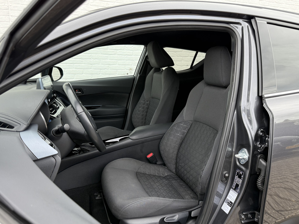 Comfortabel en veilig achteruitrijden gaat gemakkelijker dan ooit met behulp van de achteruitrijcamera. Adaptive cruise control is een comfortabele en veilige optie. Het systeem reguleert de snelheid en houdt automatisch afstand tot uw voorligger. Deze Toyota C-HR is 'connected'. Belangrijke functies worden permanent gemeten en zijn uit te lezen via een speciale app, ook op afstand. U kunt het audiosysteem met dab-ontvangst bedienen met de knoppen op het stuur. Dankzij automatische airconditioning is het interieur behaaglijk warm of verfrissend koel. De Toyota is standaard voorzien van: regensensor, keyless entry, automatisch dimmende binnenspiegel en usb-aansluiting.