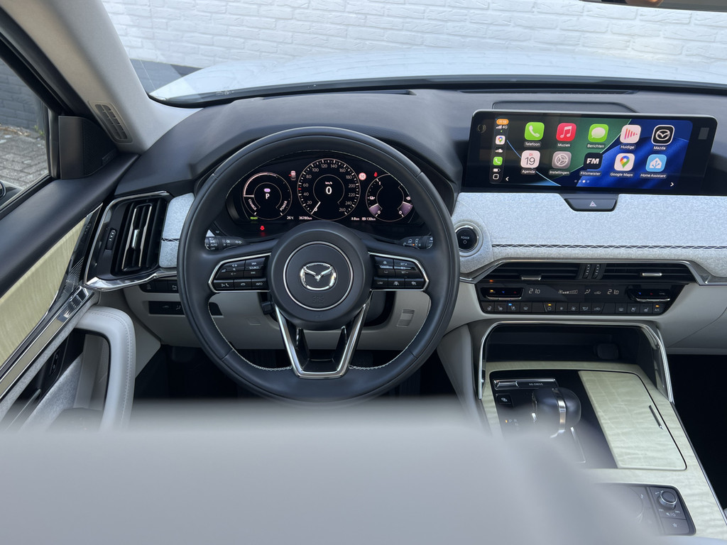 U rijdt gemakkelijk, comfortabel en zonder zorgen met deze Mazda CX-60. Het is een auto van het bouwjaar 2022. Deze Mazda CX-60 heeft een hybride motor, dus een combi van brandstof en elektrisch. Een slim en milieuvriendelijk systeem dat ook nog eens lekker kostenbesparend is. Als we het over kwaliteit en stijl hebben, wat dacht u dan van het lederen interieur? Zit u goed? De stoelen zijn eenvoudig instelbaar dankzij de elektrische bediening met geheugen. Laat de zon maar schijnen door het elektrisch bediende glazen panoramadak. De achterklep opent automatisch met een druk op de knop. Handig als u met volle handen staat. De verwarmde achterbank is een luxe extra, speciaal voor de passagiers. Natuurlijk behoren 20 inch lichtmetalen velgen, LED koplampen, dakspoiler, donker getint glas achter, in delen neerklapbare achterbank en LED-achterlichten ook tot de uitrusting van deze complete auto.