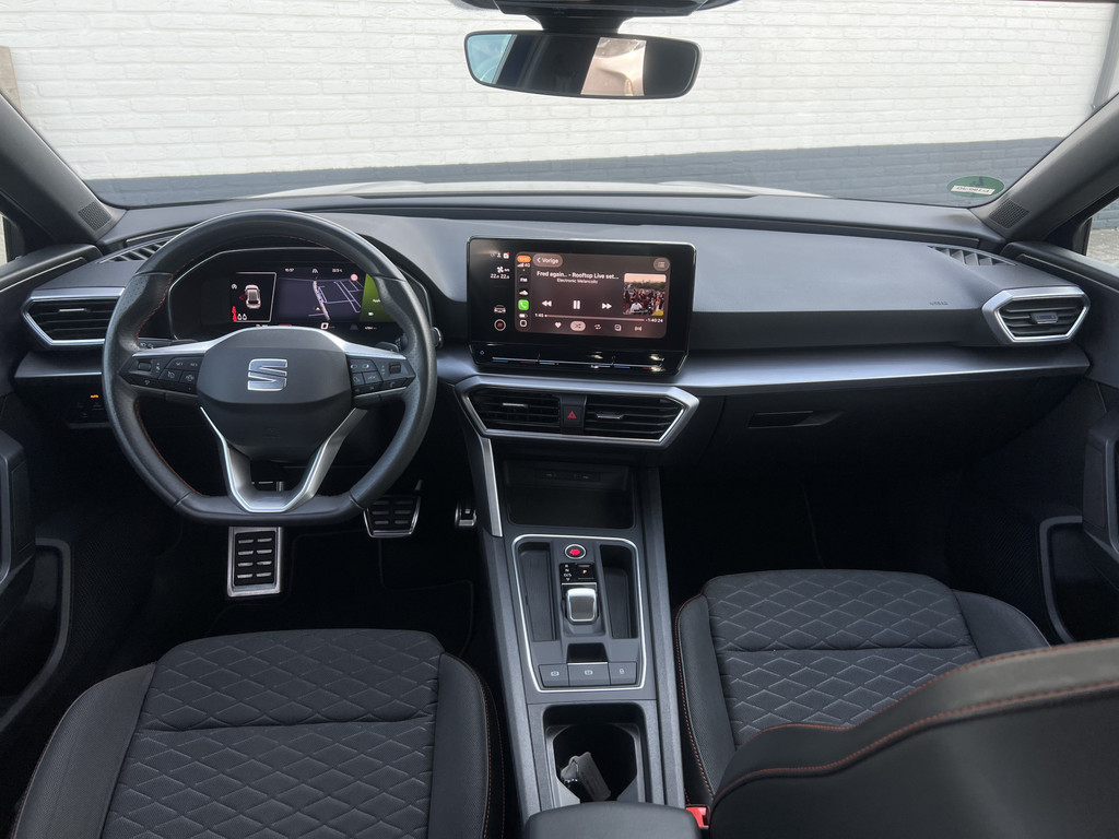 Dit is niet zomaar een SEAT Leon. De hoge prestaties van de motor, het strak afgestelde onderstel en de uitgekiende verhoudingen van de transmissie staan garant voor bergen rijplezier. De aandrijving van deze SEAT wordt verzorgd door een viercilinder benzinemotor en een automatische transmissie. De sportstoelen geven het interieur een super strakke look. Verder is de SEAT uitgerust met: 18 inch lichtmetalen velgen, LED koplampen, donker getint glas achter, in delen neerklapbare achterbank, LED-achterlichten en verstelbare lendensteunen.