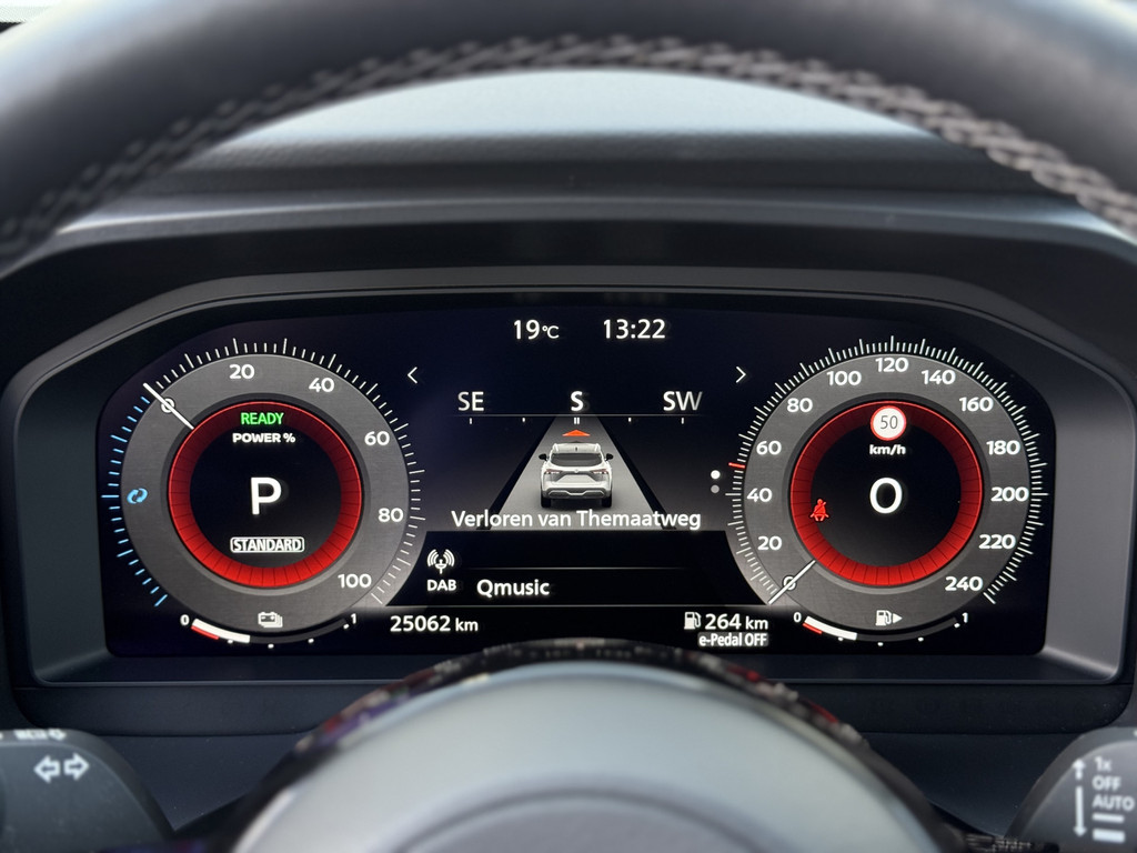 Verken de digitale wereld van mobiliteit waar het digitale dashboard alles biedt wat u nodig heeft om uw reis comfortabel te maken. Elk van de vier camera's op deze auto draagt bij aan het creëren van een onbelemmerd uitzicht van 360 graden rondom de auto. Met adaptive cruise control houdt de auto zelfstandig afstand tot uw voorligger. Een veiligheidsverhogende optie waarmee u comfortabel onderweg bent. Als u 'm vraagt 'hoe gaat het?' geeft deze auto zelf het antwoord. Via de app op uw smartphone. U checkt de meters waar u maar wilt, of activeert diverse functies alvast. Het full map navigatiesysteem zorgt ervoor dat u altijd de juiste en snelste route vindt. U bent in deze Nissan ook voorzien van WIFI-hotspot, achteropkomend verkeer waarschuwing, kruisend verkeer detectie, automatische airconditioning, DAB ontvangst en regensensor.