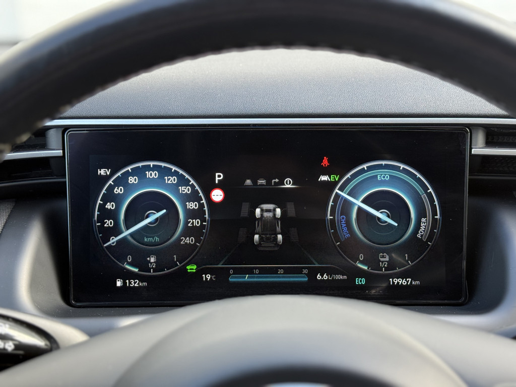 Het gecombineerde vermogen van een elektromotor plus een verbrandingsmotor geeft deze hybride Hyundai zijn geweldige rijkwaliteiten. Dit is een Tucson van het bouwjaar 2021, hij heeft 19967 kilometer op de teller staan. De uitstekende prestaties van deze auto komen van de viercilinder motor en de automatische transmissie. In weer een wind een cabrio-gevoel? Daarvoor zorgt het elektrisch bediende glazen panorama dak. En het moeiteloos in- en uitladen is te danken aan de elektrisch bedienbare achterklep. Het comfort van de stoelverwarming geeft in koude dagen nét dat beetje extra. Bij de rijke uitrusting horen ook 19 inch lichtmetalen velgen, LED koplampen, donker getint glas achter, in delen neerklapbare achterbank, LED-achterlichten en verstelbare lendensteunen.
