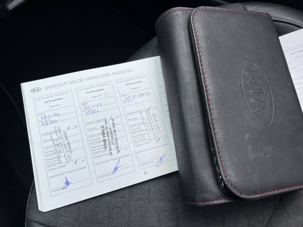 Parkeer en kijk niet om! De achteruitrijcamera doet dat voor u. Adaptive cruise control is veilig en comfortabel. De snelheidsregelaar houdt automatisch afstand tot het voertuig dat voor u rijdt. In deze auto beschikt u natuurlijk over een full map navigatiesysteem. Het audiosysteem met DAB-radio biedt glasheldere geluidskwaliteit. U bedient dit veilig via het stuurwiel. Ook is de auto voorzien van automatische airconditioning. Achter het stuur van deze Kia bent u niet alleen. De auto kijkt als het ware met u mee tijdens de rit. De regensensor schakelt de ruitenwissers in als het nodig is en de automatisch inschakelbare verlichting doet de lichten voor u aan. Ook schakelpaddles aan het stuur, automatisch dimmende binnenspiegel, usb-aansluiting, centrale deurvergrendeling met afstandsbediening, bagage afdekhoes en lederen versnellingspook horen tot de voorzieningen op deze auto.