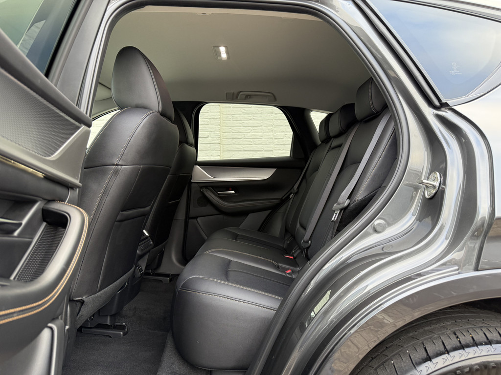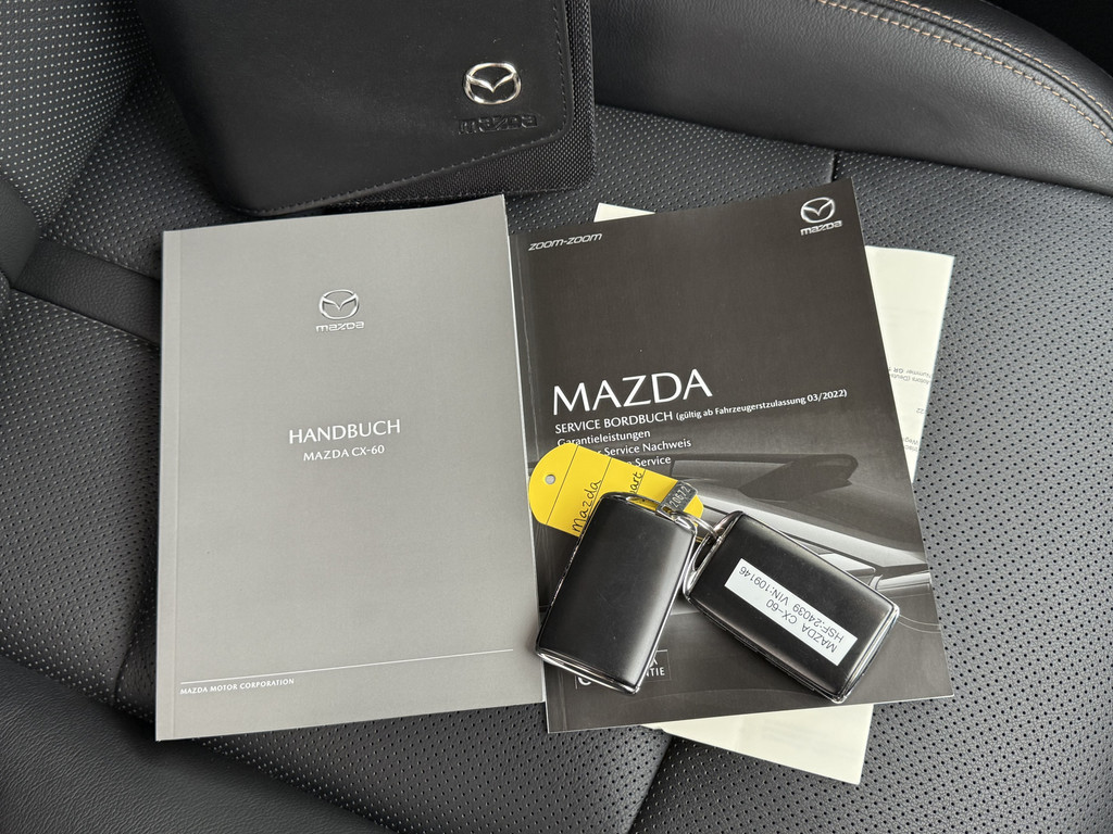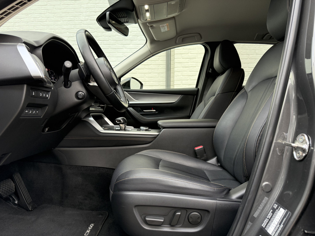 Stijlvol en veelzijdig, dat zijn misschien wel de belangrijkste kenmerken van de Mazda CX-60. Dit exemplaar is bovendien voorzien van verschillende systemen die het autorijden aangenamer en veiliger maken. Op de teller van deze auto staat slechts 25045 kilometer. Deze Mazda CX-60 is voorzien van zowel een elektromotor als een verbrandingsmotor. Ideale combi! Kijk, dat noemen we nou stijlvol: een fraai lederen interieur. Gecombineerd met het heerlijke gemak van de elektrisch bedienbare achterklep. 's Winters komen de verwarmbare voorstoelen heerlijk van pas. Voor en achter: iedereen dezelfde luxe. Vandaar de verwarmde achterbank. Ook 20 inch lichtmetalen velgen, LED koplampen, dakspoiler, donker getint glas achter, in delen neerklapbare achterbank en LED-achterlichten horen tot de voorzieningen op deze auto.