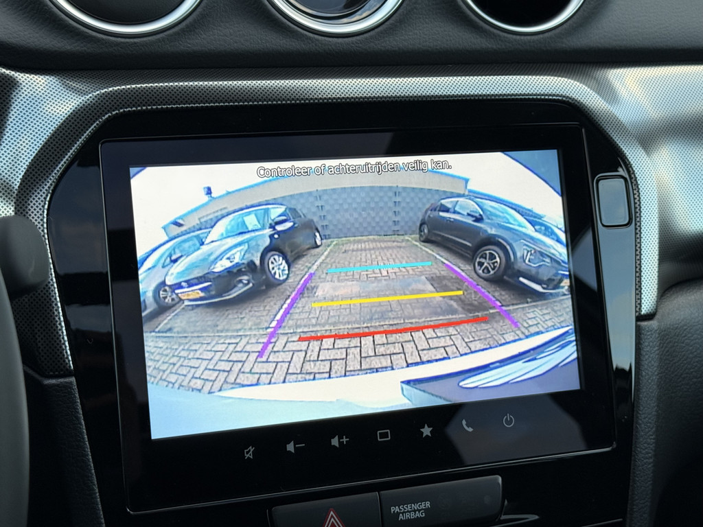 Een handige optie is de achteruitrijcamera. Achteruitrijden, inparkeren en manoeuvreren gaat gemakkelijker dan ooit. Adaptive cruise control is een comfortabele en veilige optie. Het systeem reguleert de snelheid en houdt automatisch afstand tot uw voorligger. Ingericht op Connected Services, voor een nog veiligere en comfortabelere rit. De snelste of zuinigste weg? Het full map navigatiesysteem aan boord wijst de juiste weg! Ook over uw schouder ziet u onderweg niet alles wat er aan de achterzijde gebeurt. Daarom heeft deze Suzuki Vitara een achteropkomend verkeer waarschuwing. Deze Suzuki is voorzien van electronic climate control, schakelpaddles aan het stuur, DAB ontvangst, regensensor, keyless entry en automatisch dimmende binnenspiegel.