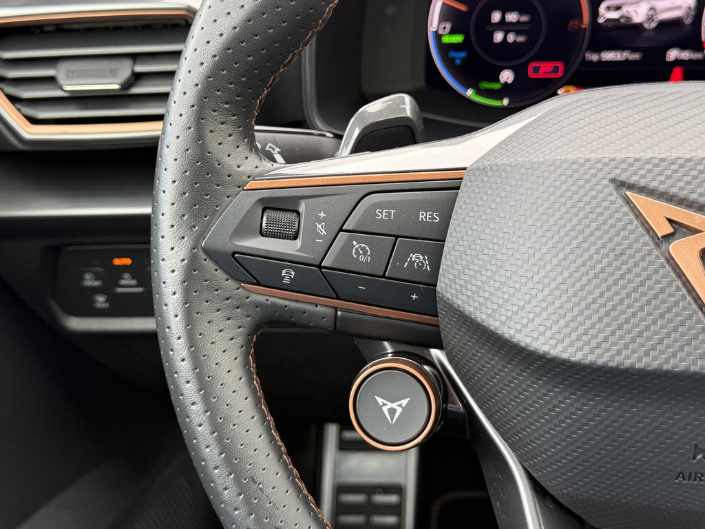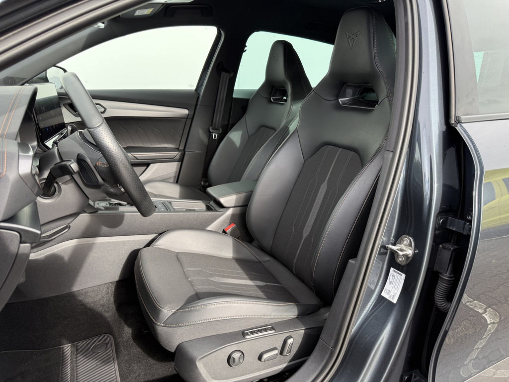 Deze CUPRA biedt u niet alleen comfort en rijplezier, maar ook veiligheid. Actieve veiligheidssystemen houden voor u de weg in de gaten en reageren op onvoorziene situaties voordat u dat kunt. De actuele snelheidslimiet, een inhaalverbod en andere verkeersborden. De verkeersborddetectie ondersteunt u tijdens elke rit. Mooi binnen de lijnen van de rijstrook blijven? Het Lane-keeping systeem helpt altijd een handje. In een noodsituatie waarschuwt forward collision warning bij een dreigende aanrijding met een voorligger. Ook helpen het dodehoekdetectie, hill hold functie, vermoeidheidsherkenning, autonoom remsysteem en bandenspanningcontrolesysteem, uw rit tot een veilige rit te maken.