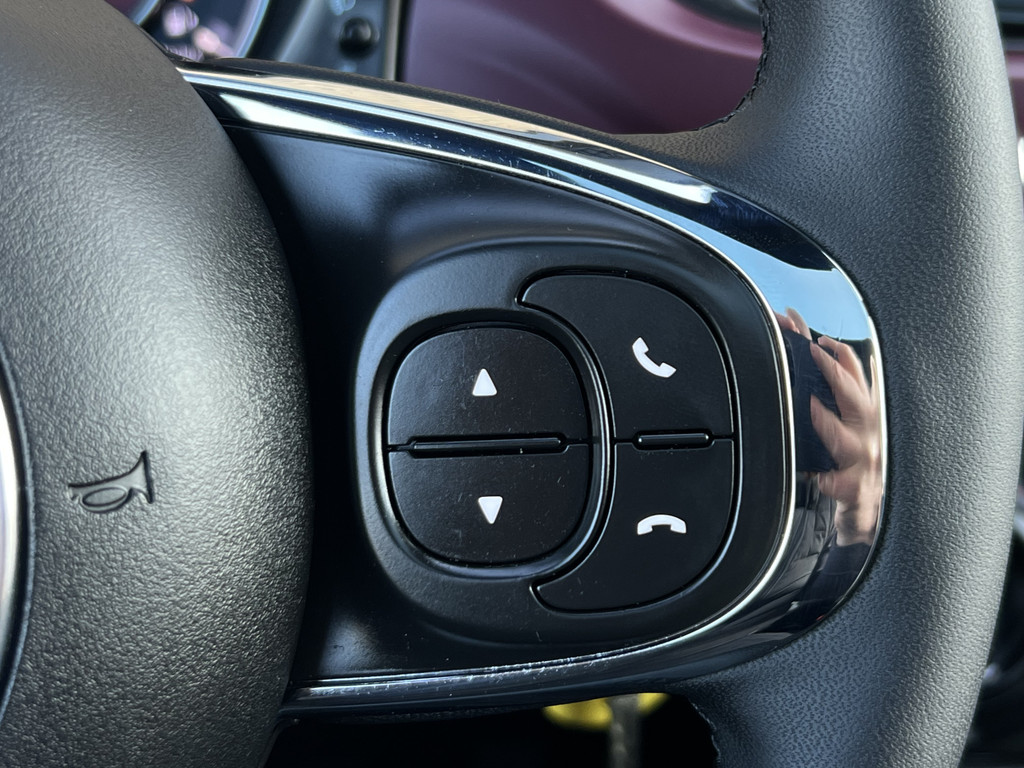 U leest alle belangrijke functies helder af dankzij het digitale dashboard. Mocht zich een probleem voordoen, dan krijgt u via remote services op uw smartphone te zien wat er precies aan de hand is, waar u ook bent. Audiovolume aanpassen of wisselen van radiozender: dat gaat makkelijk en veilig met de audiobediening op het stuur. Met de DAB-ontvanger heeft u keuze uit talloze digitale radiozenders met de allerhoogste geluidskwaliteit. Boem is ho? Niet bij deze Fiat 500. De piepjes van de parkeersensoren waarschuwen u op tijd voor obstakels. Met cruise control, airconditioning, lederen stuur, usb-aansluiting en centrale deurvergrendeling met afstandsbediening is deze Fiat helemaal compleet.