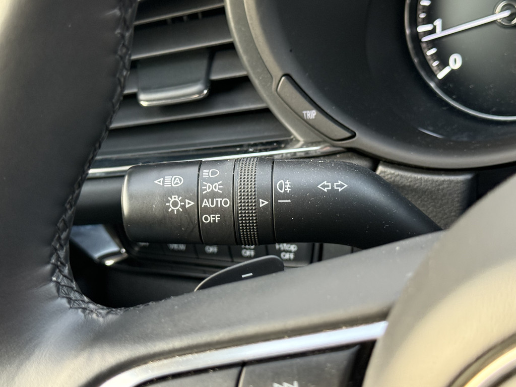 Deze Mazda is voorzien van verschillende intelligente veiligheidsvoorzieningen. Ze kijken tijdens het rijden als het ware met u mee, ze signaleren potentieel gevaarlijke situaties en in een aantal gevallen kunnen ze ook ingrijpen. Hou de weg in het vizier! De head-up display zorgt dat u de dashboardinfo in beeld geprojecteerd krijgt. Wat deze auto ook kan, is lezen. Hij 'leest' voor u de verkeersborden tijdens de rit en attendeert u erop door ze op het dashboard te projecteren. Met het Lane-keeping systeem komt u nooit per ongeluk buiten de rijstrook. In deze Mazda vinden we verder een dodehoekdetectie, forward collision warning system, hill hold functie, brake assist, vermoeidheidsherkenning en bandenspanningcontrolesysteem.