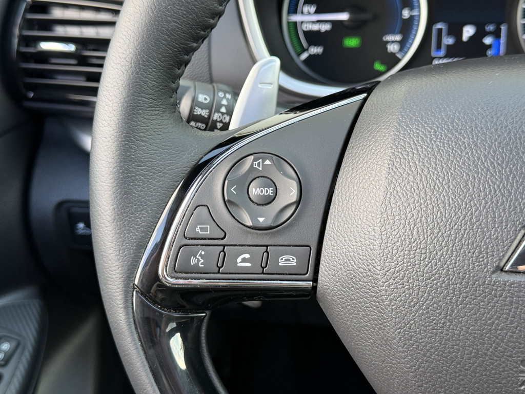 Aan boord van deze Mitsubishi houden verschillende geavanceerde systemen voor u de weg in de gaten. Ze waarschuwen u voor noodsituaties en kunnen in een aantal gevallen ook zelf ingrijpen. Onderweg worden ritfuncties naar keuze op de voorruit geprojecteerd met de head-up display. Een belangrijke bijdrage aan de veiligheid onderweg levert de verkeersbord-detectie. Indien u onbedoeld de rijstrook lijkt te verlaten, reageert het Lane-keeping systeem meteen en corrigeert. In deze Mitsubishi vinden we verder een forward collision warning system, hill hold functie, brake assist en bandenspanningcontrolesysteem.