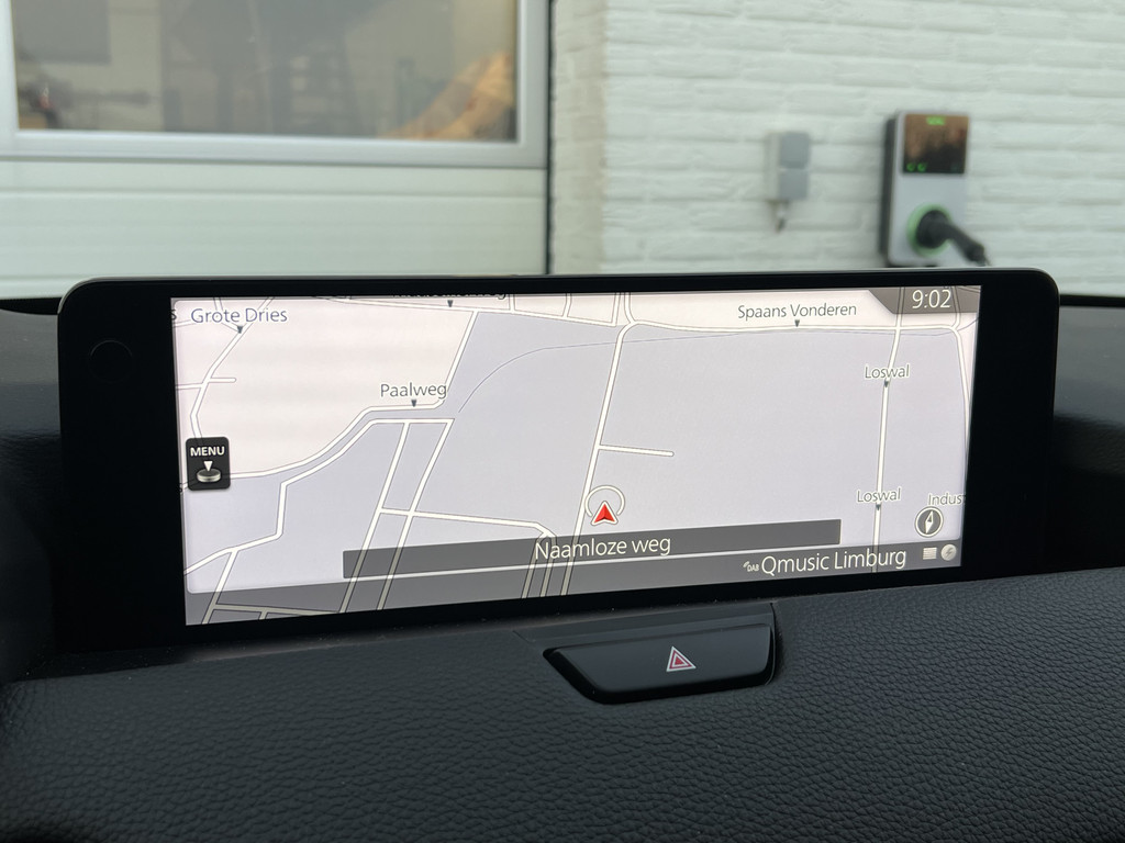 Tijdens de rit wordt u als bestuurder ondersteund door verschillende systemen die de weg en uw omgeving in de gaten houden. Uiteenlopende functies maakt de head-up display zichtbaar in de voorruit. Dat de auto steeds meer taken van de bestuurder overneemt, merkt u bijvoorbeeld aan het systeem voor verkeersbord-detectie in deze Mazda. Het Lane-keeping systeem zorgt dat u mooi binnen de lijntjes blijft. Ongemerkt buiten de rijstrook komen is er niet meer bij. Verder is deze auto uitgerust met dodehoekdetector detectiesysteem, forward collision warning system, hill hold functie, brake assist, vermoeidheidsherkenning en bandenspanningcontrolesysteem.
