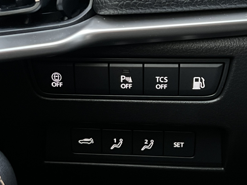 Tijdens de rit wordt u als bestuurder ondersteund door verschillende systemen die de weg en uw omgeving in de gaten houden. Uiteenlopende functies maakt de head-up display zichtbaar in de voorruit. Dat de auto steeds meer taken van de bestuurder overneemt, merkt u bijvoorbeeld aan het systeem voor verkeersbord-detectie in deze Mazda. Het Lane-keeping systeem zorgt dat u mooi binnen de lijntjes blijft. Ongemerkt buiten de rijstrook komen is er niet meer bij. Verder is deze auto uitgerust met dodehoekdetector detectiesysteem, forward collision warning system, hill hold functie, brake assist, vermoeidheidsherkenning en bandenspanningcontrolesysteem.