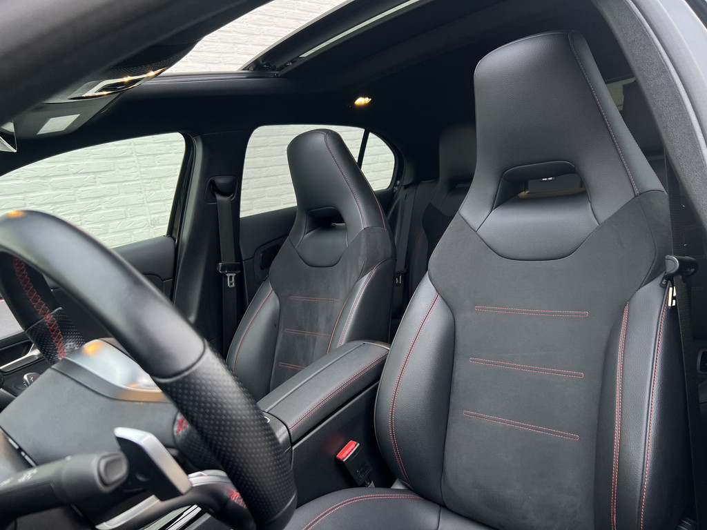 Dankzij hoogwaardige techniek en verschillende veiligheidssystemen, biedt deze Mercedes-Benz A-klasse u optimale veiligheid en comfort tijdens iedere rit. Sportief, stoer en net even anders dan anders, mede dankzij de AMG-styling. De aandrijving komt voor rekening van een benzinemotor en een automatische transmissie. Kou en regen maken geen indruk. Binnen zit u comfortabel dankzij de stoelverwarming. Wat een licht geeft dat glazen elektrisch bedienbare panoramadak. De koplampen met matrix LED-verlichting zijn het hoogst haalbare op het gebied van autoverlichting. Ook is de auto voorzien van: 18 inch lichtmetalen velgen, AMG-styling, warmtewerend glas en in delen neerklapbare achterbank.
