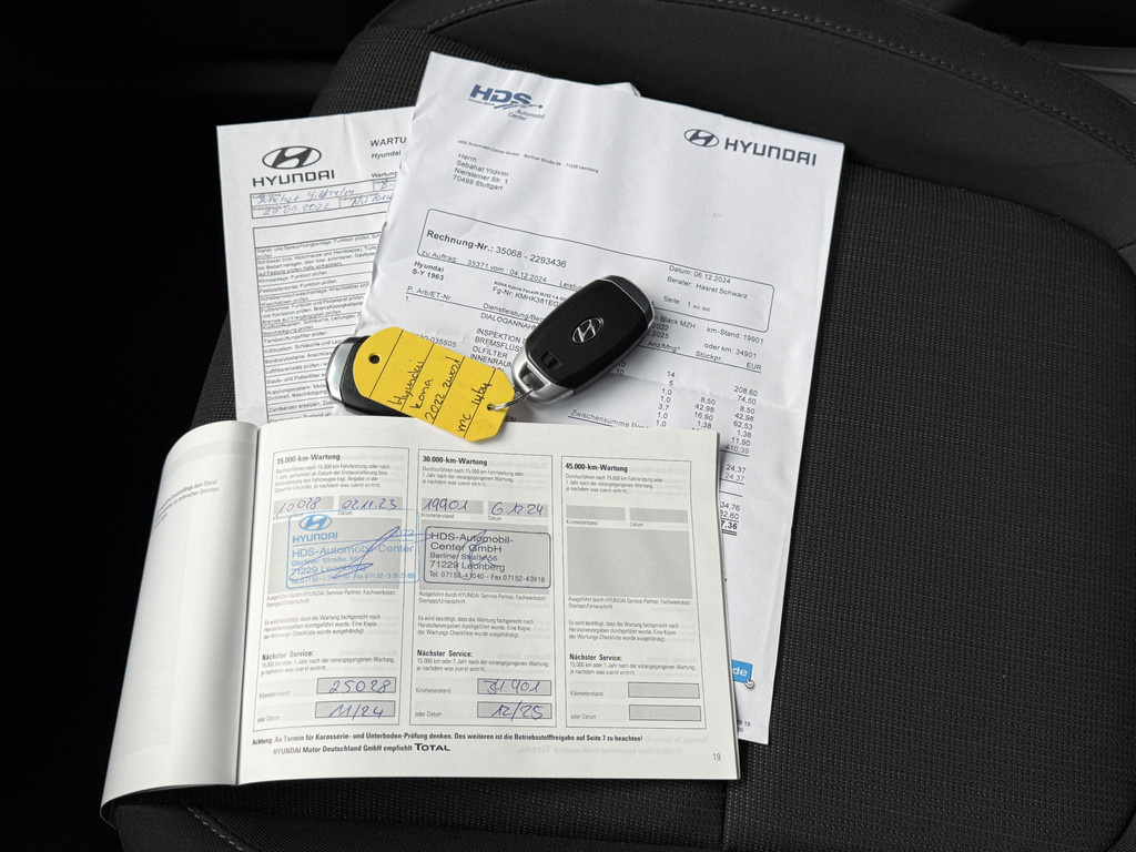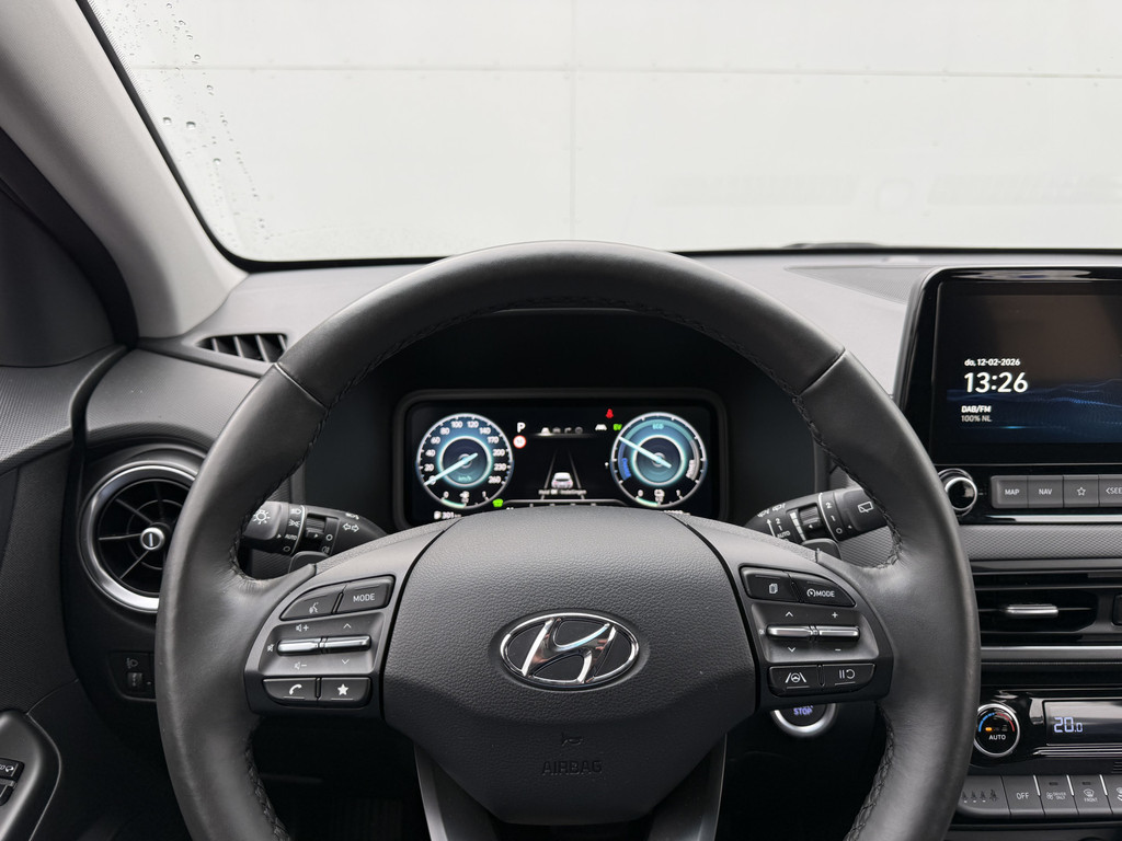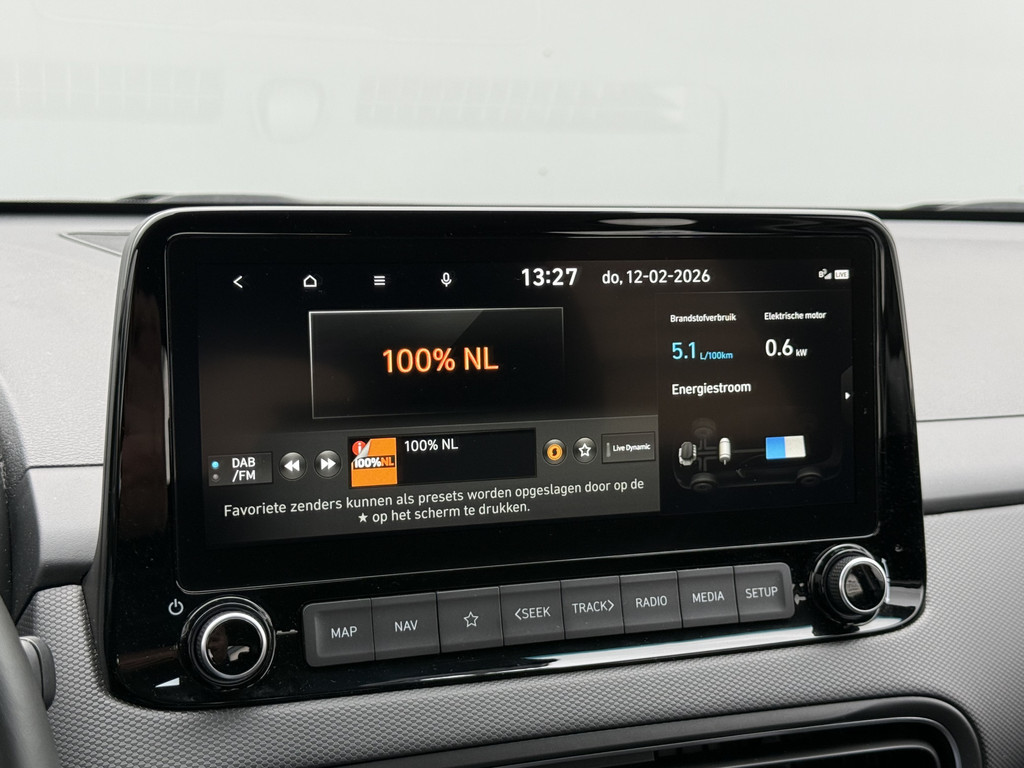 Het is een auto die er nog jaren tegenaan kan, deze Hyundai. De onderhoudsgeschiedenis is bekend, de kilometerteller staat op 28292. De hybride motor combineert het gebruik van brandstof en elektriciteit, en dat maakt van deze Hyundai Kona een zuinige, slimme auto. Op koude en donkere dagen zijn de verwarmbare voorstoelen een uitkomst. Wind, sneeuw, hagel, regen... allemaal vergeten als u het verwarmd stuurwiel in handen heeft. Natuurlijk behoren 18 inch lichtmetalen velgen, warmtewerend glas, LED-dagrijverlichting, dakspoiler, in delen neerklapbare achterbank en verstelbare lendensteunen ook tot de uitrusting van deze complete auto.