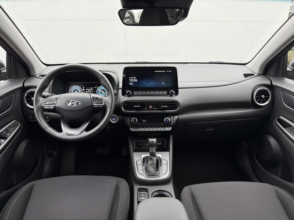 Het is een auto die er nog jaren tegenaan kan, deze Hyundai. De onderhoudsgeschiedenis is bekend, de kilometerteller staat op 28292. De hybride motor combineert het gebruik van brandstof en elektriciteit, en dat maakt van deze Hyundai Kona een zuinige, slimme auto. Op koude en donkere dagen zijn de verwarmbare voorstoelen een uitkomst. Wind, sneeuw, hagel, regen... allemaal vergeten als u het verwarmd stuurwiel in handen heeft. Natuurlijk behoren 18 inch lichtmetalen velgen, warmtewerend glas, LED-dagrijverlichting, dakspoiler, in delen neerklapbare achterbank en verstelbare lendensteunen ook tot de uitrusting van deze complete auto.