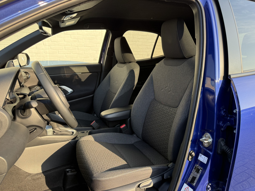 Met een gerust hart achteruitrijden? Dat kan, dankzij de achteruitrijcamera. Adaptive cruise control is een comfortabele en veilige optie. Het systeem reguleert de snelheid en houdt automatisch afstand tot uw voorligger. Mocht zich een probleem voordoen, dan krijgt u via remote services op uw smartphone te zien wat er precies aan de hand is, waar u ook bent. In deze Yaris Cross vindt u schakelaars op het stuur om het full map navigatiesysteem te bedienen en het audio-installatiesysteem met DAB-ontvangst. Klik de smartphone in de houder en de draadloze telefoonlader zorgt voor een volle accu. Ook is de Toyota uitgerust met: automatische airconditioning, regensensor, keyless entry, buitentemperatuurmeter, automatisch dimmende binnenspiegel en usb-aansluiting.