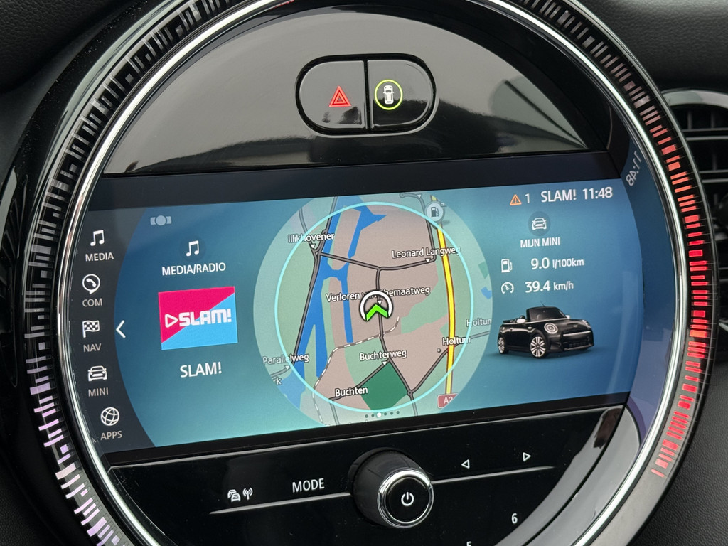 De nieuwste veiligheidssystemen komen in deze MINI Cabrio samen. Onderweg fungeert de verkeersbord-detectie als het ware als uw bijrijder en attendeert u op de verkeersborden langs de weg. U bent mede dankzij head-up display, hill hold functie en bandenspanningcontrolesysteem steeds veilig onderweg.