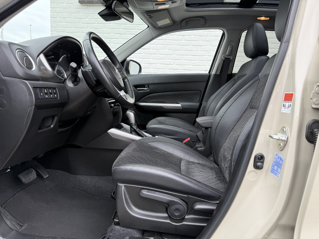 Alle technologie in de Suzuki Vitara is er op gericht om uw rit veilig en gemakkelijk te laten verlopen. Deze auto is bijna nieuw, ondanks dat hij uit 2021 komt; hij heeft slechts 23074 kilometer afgelegd. Het is een krachtige viercilinder benzinemotor die deze SUV aandrijft. Ga samen met uw bijrijder lekker zitten in de verwarmbare voorstoelen. Zon en frisse lucht krijgen vrij spel dankzij het elektrisch bediende glazen panoramadak. De uitmonstering van deze auto wordt gecompleteerd door onder meer 17 inch lichtmetalen velgen, LED koplampen, donker getint glas achter, in delen neerklapbare achterbank en snelheidsafhankelijke stuurbekrachtiging.