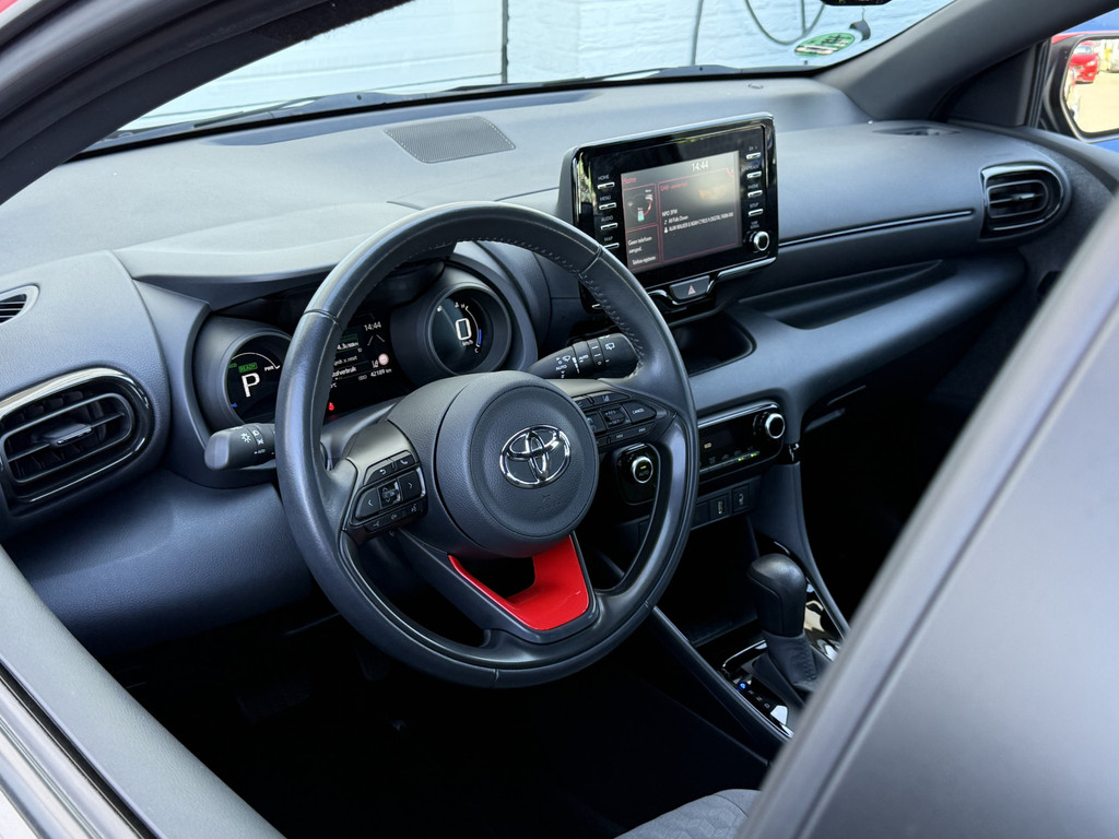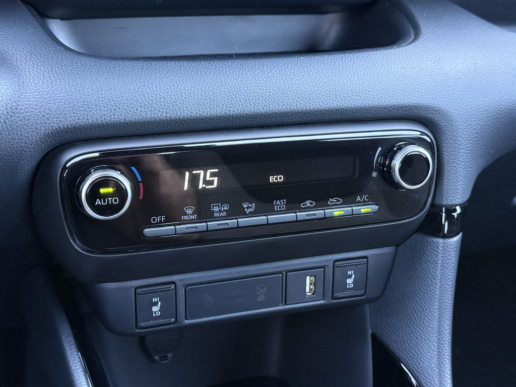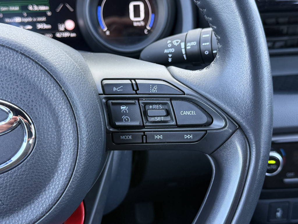 Met het digitale dashboard heeft u essentiële info in beeld. Altijd, overal. Ongelukken of parkeerschade? Dat gebeurt u niet meer, met de achteruitrijcamera. Met adaptive cruise control houdt de auto zelfstandig afstand tot uw voorligger. Een veiligheidsverhogende optie waarmee u comfortabel onderweg bent. Locatie, motorconditie, storingen... via Connected Services krijgt u alle vitale info over de auto door. Ook handig bij pech! In deze Yaris vindt u schakelaars op het stuur om het full map navigatiesysteem te bedienen en het audio-installatiesysteem met DAB-ontvangst. Ook is de Toyota uitgerust met: automatische airconditioning, regensensor, keyless entry, lederen stuur, usb-aansluiting en lederen versnellingspook.
