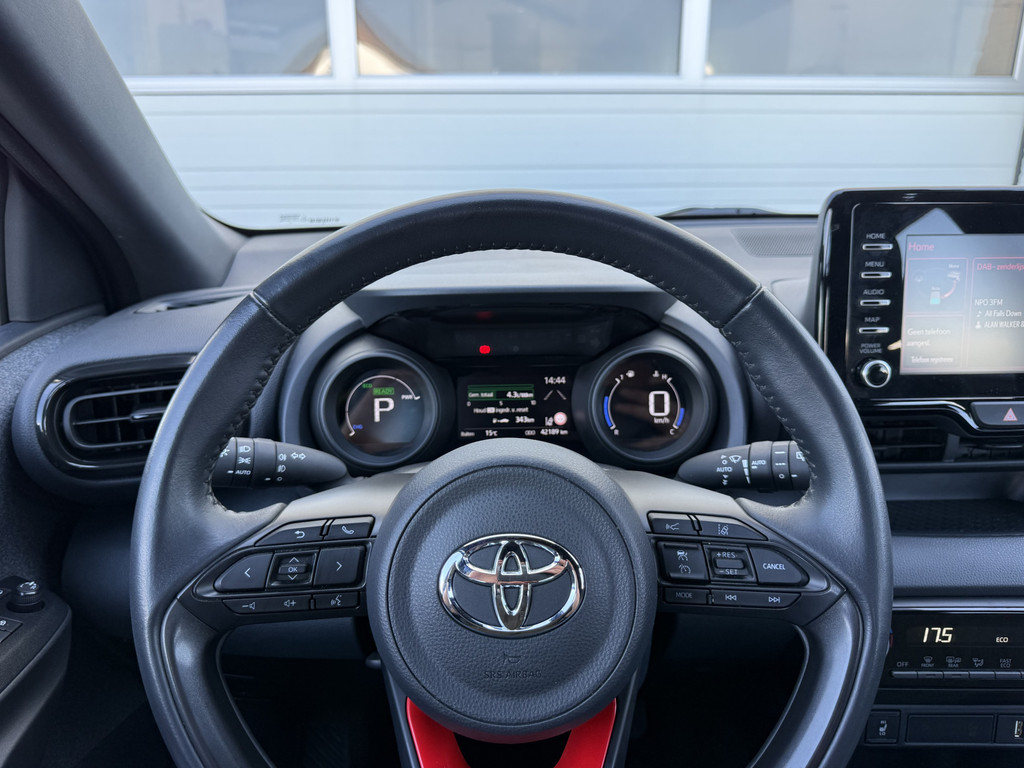 Met het digitale dashboard heeft u essentiële info in beeld. Altijd, overal. Ongelukken of parkeerschade? Dat gebeurt u niet meer, met de achteruitrijcamera. Met adaptive cruise control houdt de auto zelfstandig afstand tot uw voorligger. Een veiligheidsverhogende optie waarmee u comfortabel onderweg bent. Locatie, motorconditie, storingen... via Connected Services krijgt u alle vitale info over de auto door. Ook handig bij pech! In deze Yaris vindt u schakelaars op het stuur om het full map navigatiesysteem te bedienen en het audio-installatiesysteem met DAB-ontvangst. Ook is de Toyota uitgerust met: automatische airconditioning, regensensor, keyless entry, lederen stuur, usb-aansluiting en lederen versnellingspook.